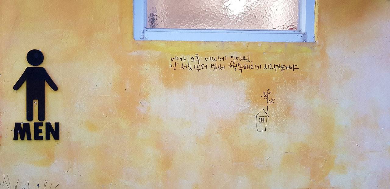 몇 정거장을 지나 버스에서 내려 예쁜 소품을 파는 가게들과 카페를 지나 멘드롱또똣 촬영한 카페를 잠시들렀다. 우리가 생활하는 곳과는 전혀 분위가 달랐다. 번화가의 느낌, 관광지의 느낌이 강해서 문명의 혜택을 누리지 못한 두메산골에서 나들이 나온 기분이었다.