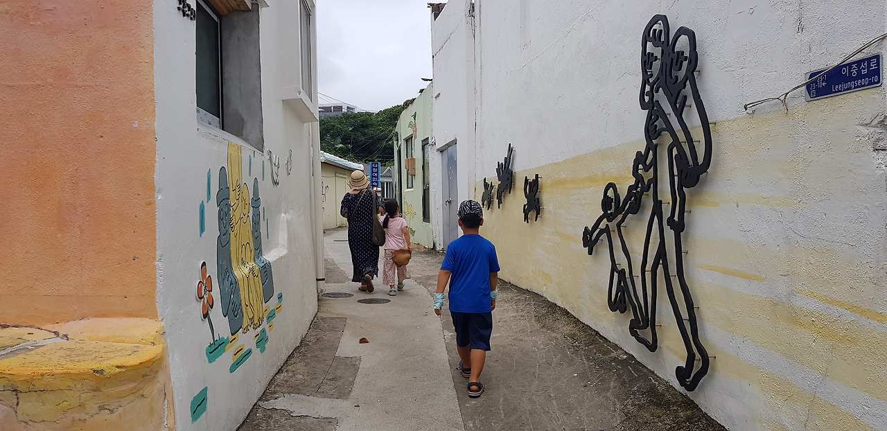 이 거리는 군데군데 이중섭 작품들로 꾸며져 있었지만 특별하다는 느낌은 없었다. 억지로 끼워 맞춘 거리라는 느낌이 더강했다. 이름에 걸맞는 거리를 만들기 위한 노력이 좀더 필요해 보였다. 이중섭미술관과 그가 살았던 집을 보고 다시 202버스를 타러갔다. 갈때는 내리막길인데 돌아오는 길은 오르막길이라 딸은 힘들어 했다. 택시를 탔어야 했다.