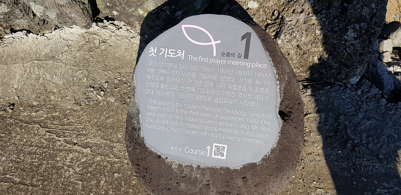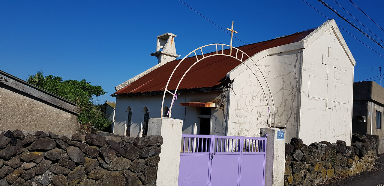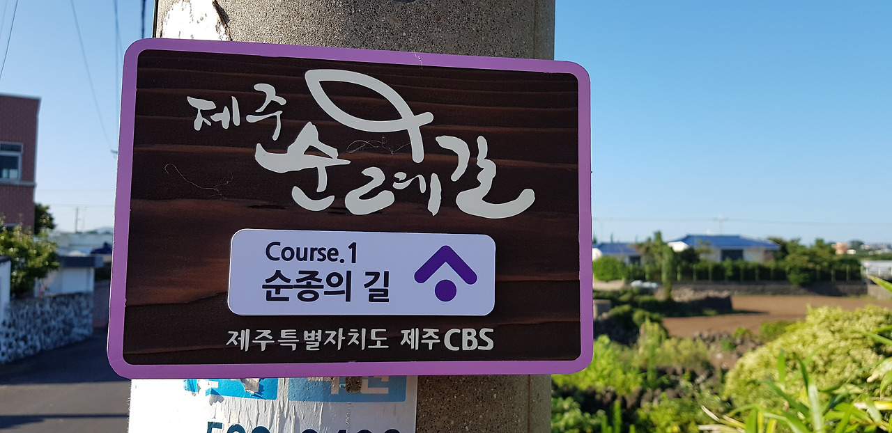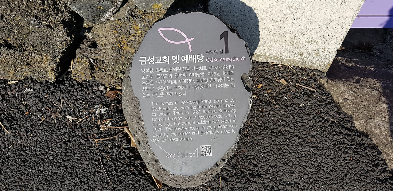 금성 1길은 제주올레길에서 순종의 길이라는 이름이 붙어있었다. 금성교회가 만들어지고 일찍부터 종교활동을 한 모양이다. 예전의 금성교회는 옅은 보라색 대문만 화려하니 남아있고 건물은 폐가가 되었다. 그리고 언덕 높은 곳에 다시 자리를 잡고 있었다. 이곳이 순종의 길임을 알수있는 또하나의 유적지는 예배를 보던 사람들이 모이던 집터가 남아있었다. 완전히 무너지고 벽채 일부만 남아있었다. 집앞에 설명이 없다면 전혀 알 수가 없었다. 심지어 이정표도 없어서 이리저리 막돌아다니지 않는다면 찾을 수가 없을 것이다.