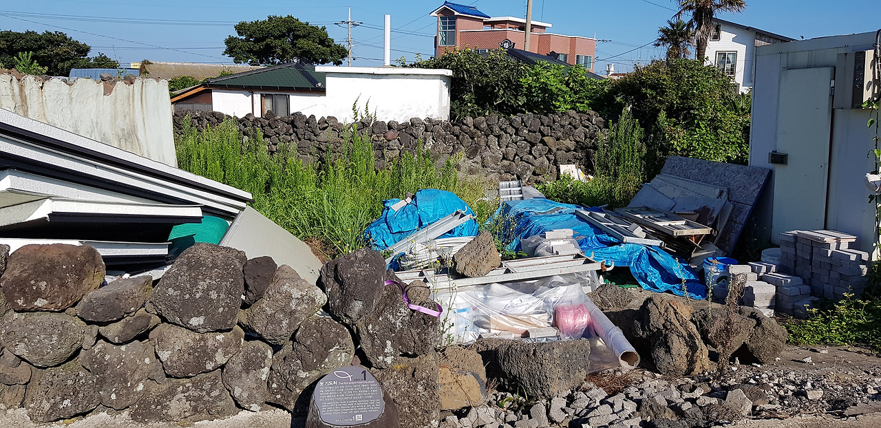 어느 시골처럼 폐가가 눈에 띄게 늘어가고 있었다. 폐가는 더욱 이곳의 생기를 빼앗아가는 것만 같았다. 빛바랜 집들은 생기를 잃고 풀에 덮히고 쓰레기가 뒹굴고 있었다. 그런데 깨지고 무너지고 있었지만 정성스럽게 지켜낸 돌벽은 그대로였다. 제주사람의 끈질긴 생명력과 부치런함이 돌벽을 통해 느껴지는 것 같았다. 우리가 사는 집 옆으로도 몇채가 나란히 주인이 떠나고 덩그러니 새로운 주인을 기다리고 있었다. 어떤 집은 알루미늄샤시로 만든 문이 붙어있는 것을 보면 얼마전까지도 사람이 살았던 것 같다. 낡았지만 조금만 고친다면 얼마든지 사람들이 살수 있을 것만 같았다. 여유가 되면 정말 한채를 사서 다시 꾸며 살고 싶은 마음이 그 집들 앞으로 지날때마다 들었다.