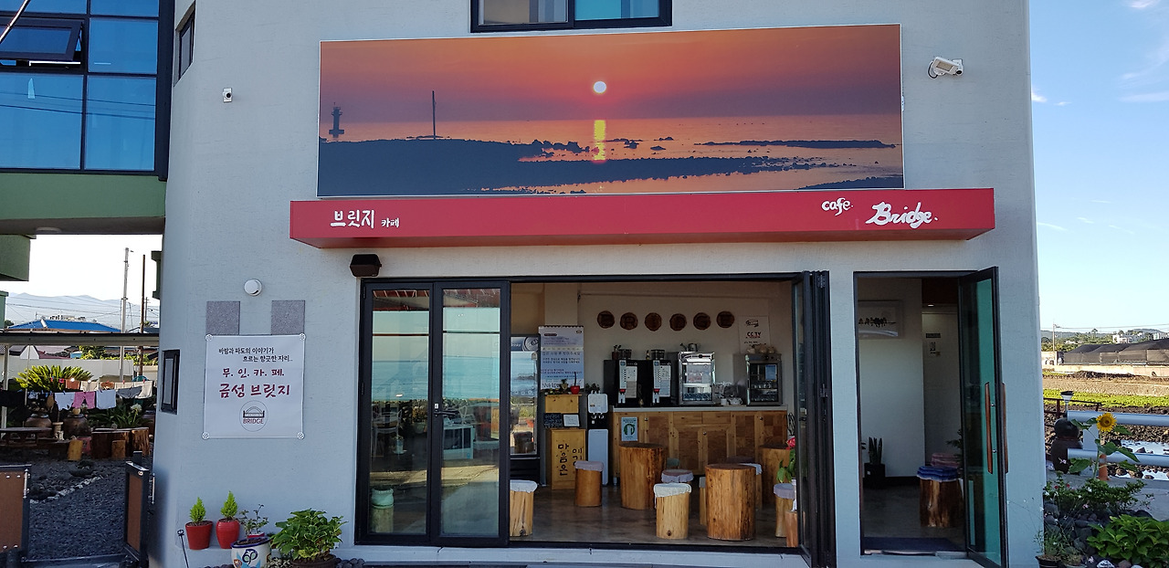 다시 반대로 가면 우물이 있어 이곳에 사람들이 정착한 이유를 알려주었다. 깨끗한 물이 지금도 잘 관리되고 있었다. 이곳과 어울리지 않는 붉은 페인트가 칠해진 집, 주인할머니를 기다린다고 벽에 다리를 올린 개가 있는 노란 집, 떠날때 쯤 알게된 의문의 가게, 개발을 피해갈 수 없는 듯 들어선 고층의 건물, 이런 집을 지나 언덕을 넘으면 곽지해수욕장이 보인다. 그 언덕 정상에서 보는 노을이 이 주변에서는 제일 아름다웠다.
