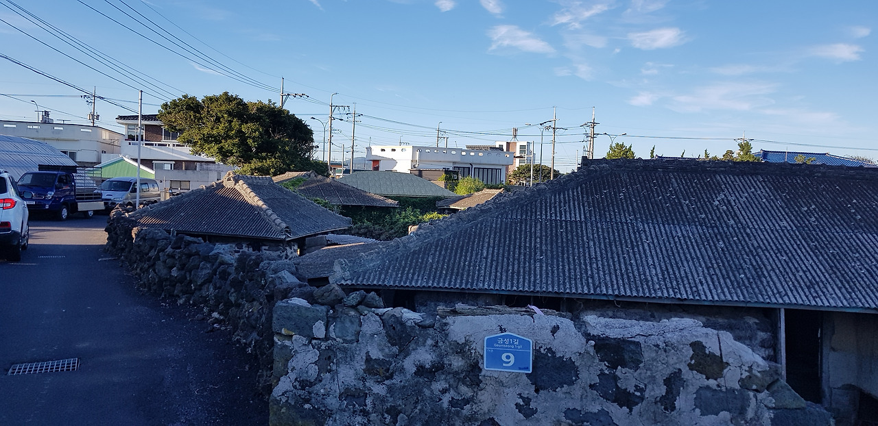큰길을 사이에 두고 나누어진 동네 애월읍 금성리. 우리는 바닷가쪽 금성리에서 10일을 살았다. 금성리 1길에서 바다쪽으로 바라보면 왼쪽은 도로보다 낮아 지붕과 나란히 걷는 느낌이 들었다. 우리가 머물렀던 집도 그런 느낌의 집이다.