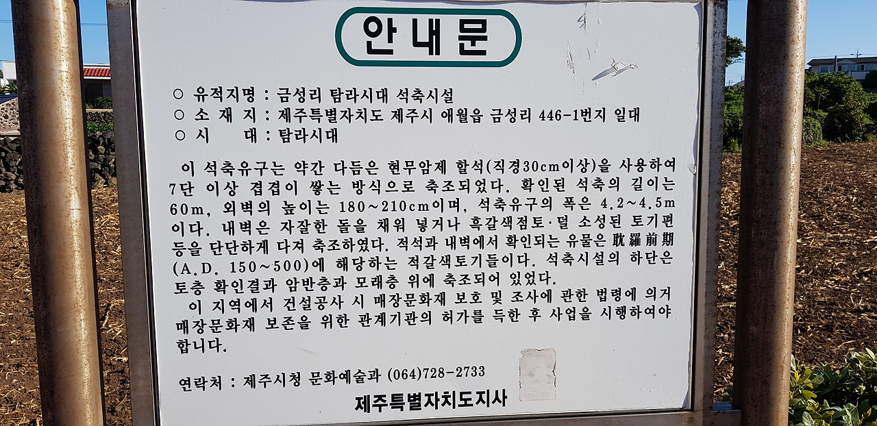 옛 성벽도 일부가 남아있고 그 안으로 문화재가 지표면에 드러나 있어서 건축행위를 할때는 반드시 신고하도록 되어있는 곳도 있었다. 밭에 토기조각들이 눈에 띠었다. 그러고 보니 이곳 금성리는 일찍부터 사람들이 모여 살았던 것같다. 살기좋아서 동네 이름도 비단 금자를 쓰는 것이 아닐까.
