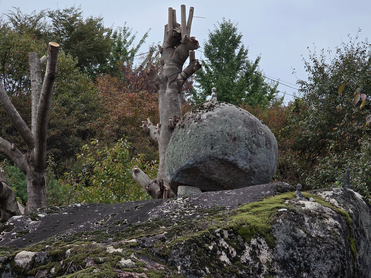 절 입구로 돌아 나와 왼쪽 편으로 원터가 있고 그 위로 3층 석탑이 하나 더 있다. 이것은 산의 기운을 불어 넣어주기(산천비보) 위한 탑으로 보고 있다. 그리고 그 위로 현대미술처럼 보이는 불상이 하나 있다. 전혀 고려시대 것처럼 보이지 않는데 고려시대 것이라고 한다. 원래 얼굴 부분만 있어 받침대를 만들었는데 부처님 목주름(삼도)을 너무 심하게 만들어 놓아 부자연스럽다. 무슨 불상 목을 근육질 또는 링처럼 보여 개운하지 않다.