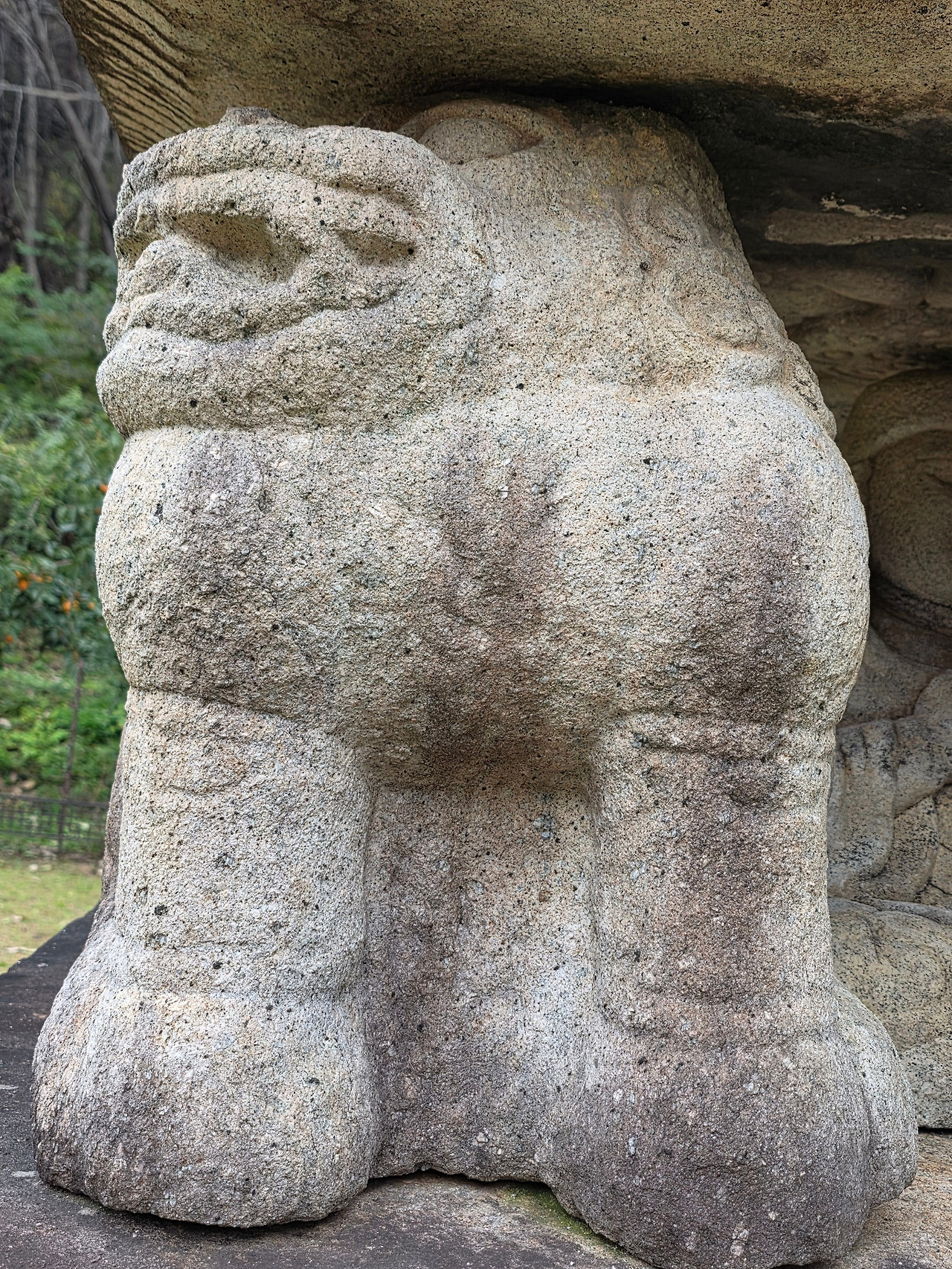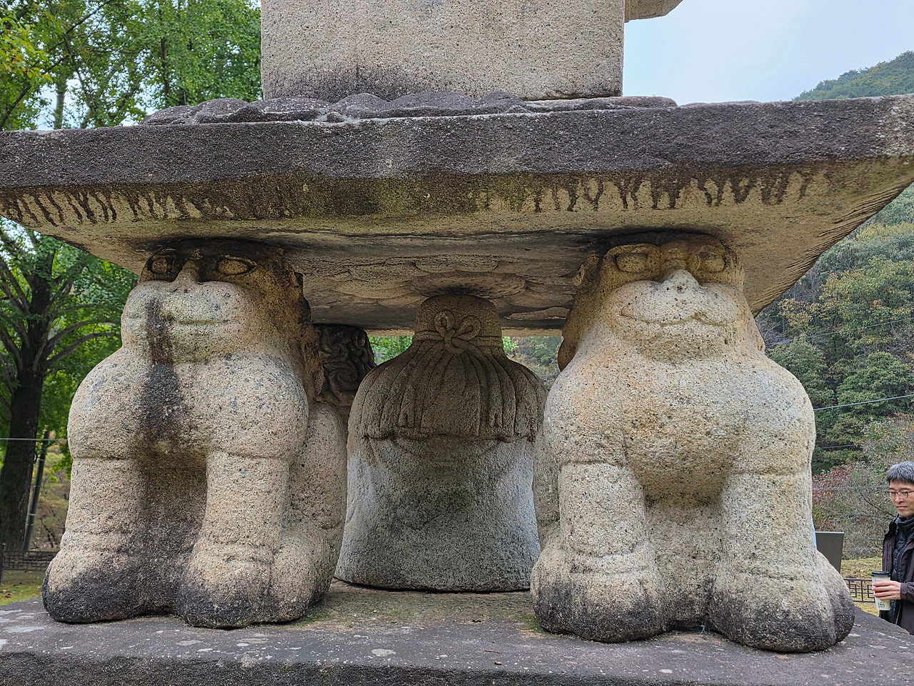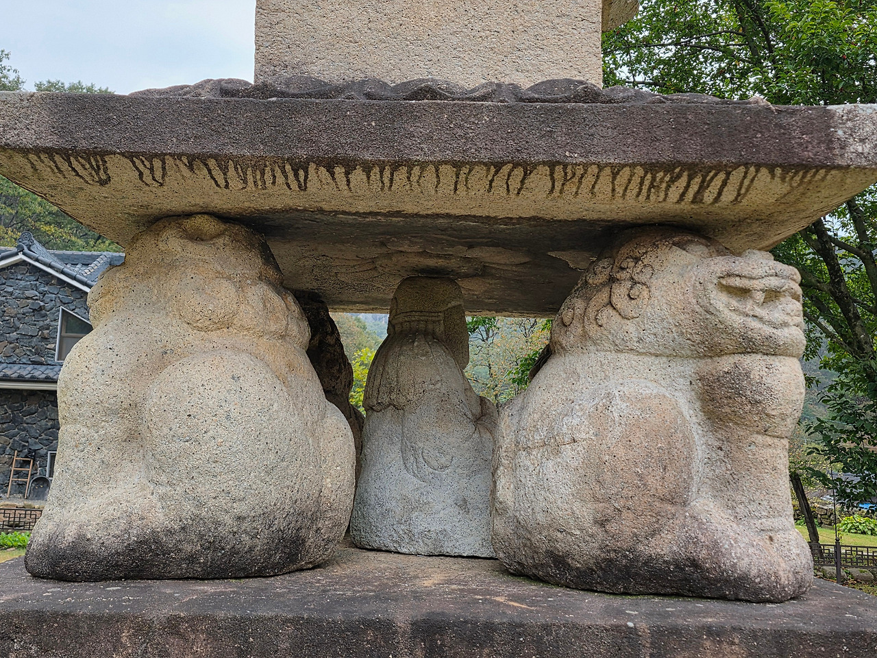 사자 네 마리 중에 정면에 있는 사자는 혀와 이빨을 드러내고 웃는 듯한 모습을 하고 있다. 다리와 발을 정면으로 하고 있는데 머리를 옆으로 돌린 것이 특이하다. 뒤쪽 2마리는 입을 다물고 다리와 머리가 정면을 바라보고 있다.