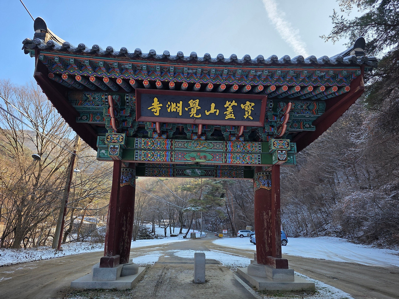 각연사로 가는 길의 끝은 보개산 각연사라는 일주문을 만나면 끝난다. 일주문을 지나자마자 넓은 공터를 주차장으로 만들어 놓았다. 절 손님과 함께 등산 손님을 위한 배려다. 주차장에서 내려 각연사까지는 금방이다. 월정사의 전나무 숲길이나 내소사의 숲길 같은 느낌은 없지만 코를 따라 들어온 공기는 온몸 구석구석으로 들어와 몸과 마음을 깨끗하게 만들어 주기에 손색이 없다. 어느 절과 다르게 절 입구에 가게 하나 없고 사람이 꾸며놓은 것은 절뿐이니 자연을 즐기는데 방해가 되는 것은 하나도 없다.