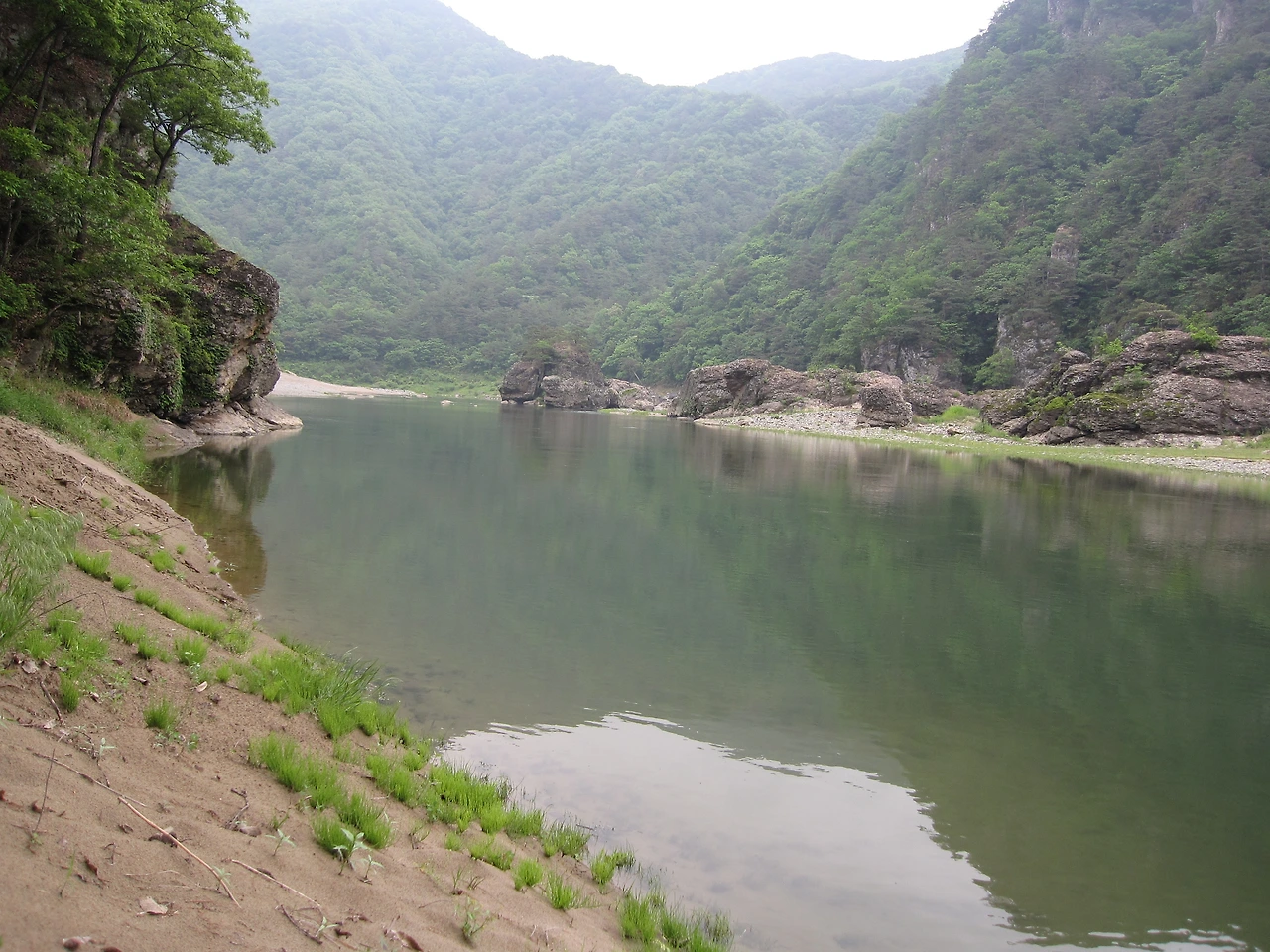 다시 산을 오르기 시작했습니다. 이제부터는 능선을 따라 걷기 시작했습니다. 산 아래로 동강의 물이 구비구비 흐르고 있습니다. 소리 없이 흐르는 듯 흐르지 않는 듯 그렇게 흐르고 있었습니다. 그러다가 한순간 자갈소리를 내면서 힘차게 흐르는 소리가 들렸습니다. 멀리 떨어져 있어 소리가 나지 않을 법도 한데, 마치 자기의 존재를 알리듯 했습니다. 능선이 끝나는 시점부터 급경사가 시작되었습니다. 설마 설마 길이 없을 같았는데, 급경사가 끝나자 바로 곁에서 동강의 물이 흐르기 시작했습니다. 멀리서 보면 색깔이 보석같이 고운데, 가까이서 보니 그리 깨끗하지는 않았습니다.