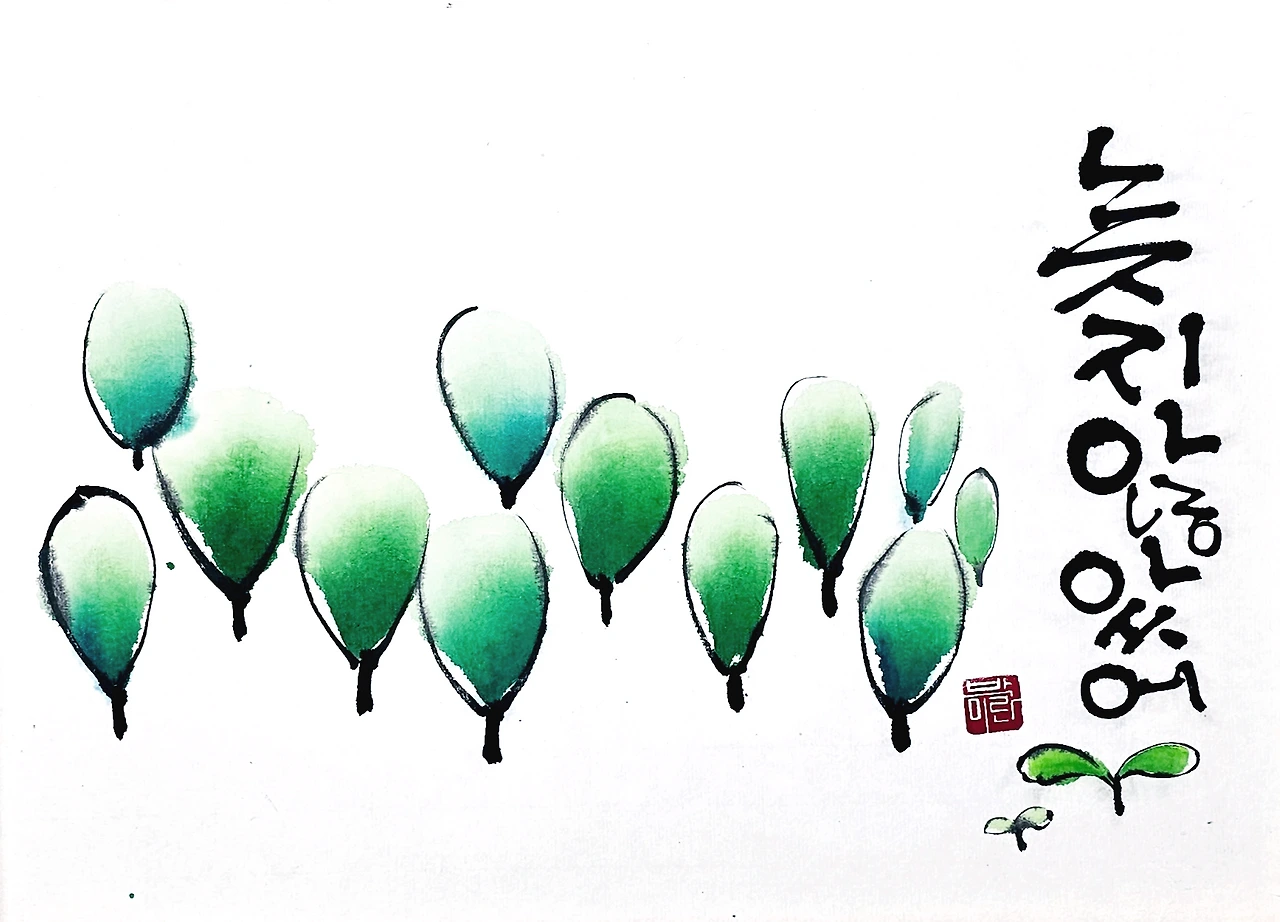 늦지 않았어 l 2023 l 화선지, 먹, 한국화물감 l 35cm×25cm