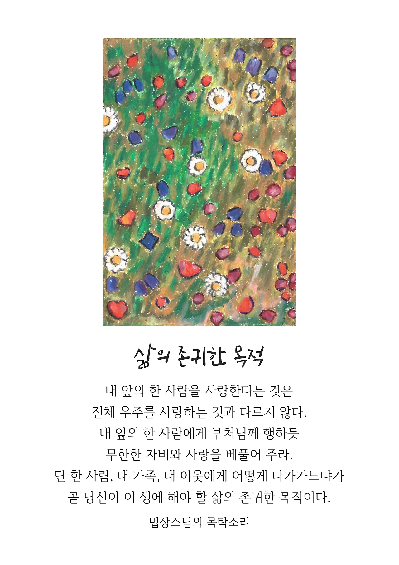 이처럼 주어진 현재를 받아들인다. 삶을 온전히 수용한다. 내가 곧 삶 그 자체가 된다. 불이법. 이것이 바로 진정한 사랑이다.