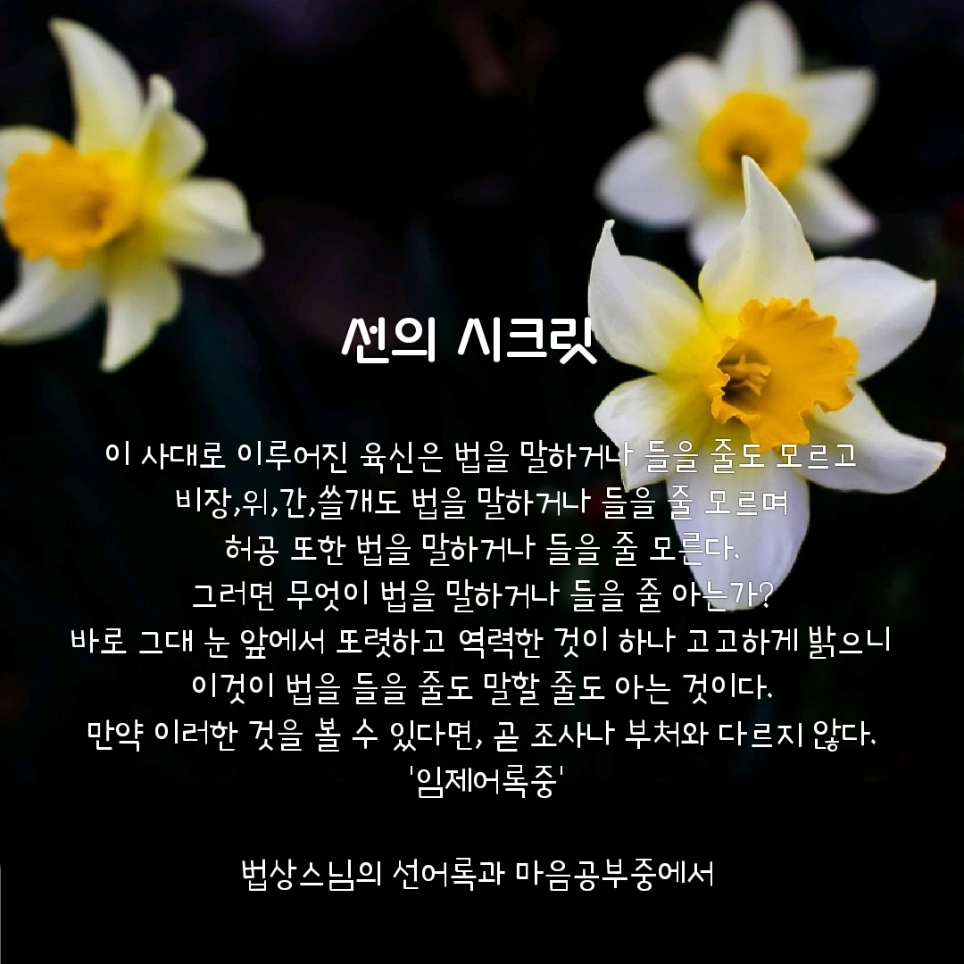 삶과 죽음은 실재가 아닌 나의 생각, 망상일 뿐이다. 나고 죽는다는 망상분별의 꿈에서 깨어나면 불생불멸한 진정한 삶 그 자체의 진실이 드러난다. 바로 그 때 삶은 이대로 완전하고 장엄하다.