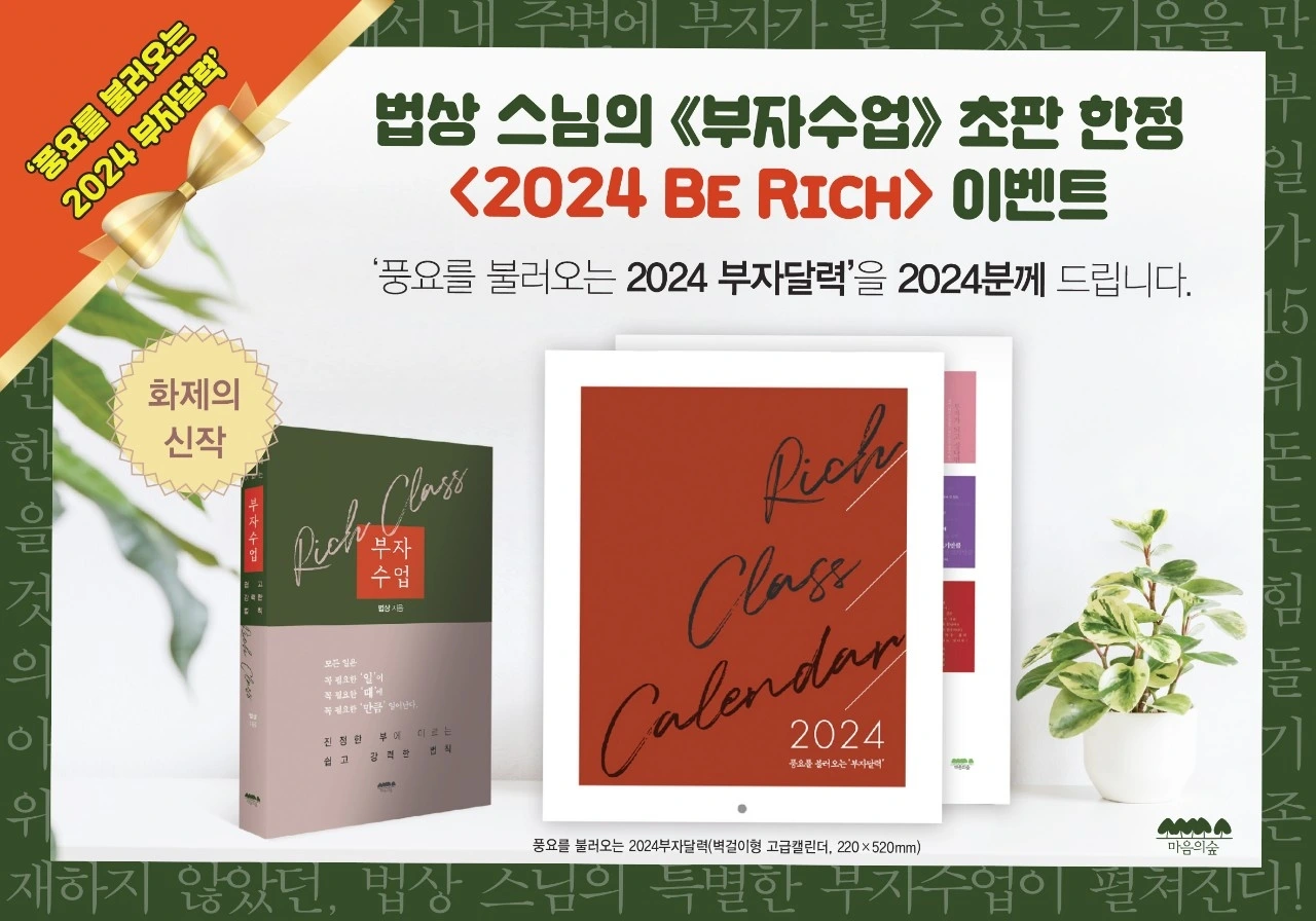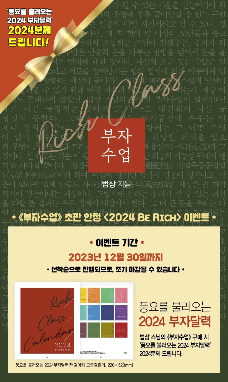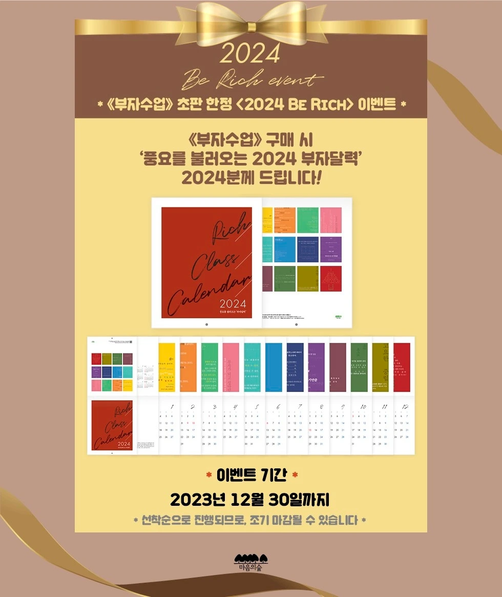 '2024 부자달력'을 책을 구입하시는 분들께 선물로 드리는 이벤트를 준비하셨네요.