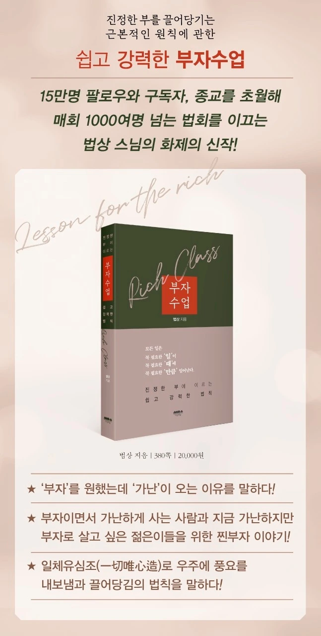 이번에 나온 법상스님의 신간 '부자수업'은 제목에서 보듯,