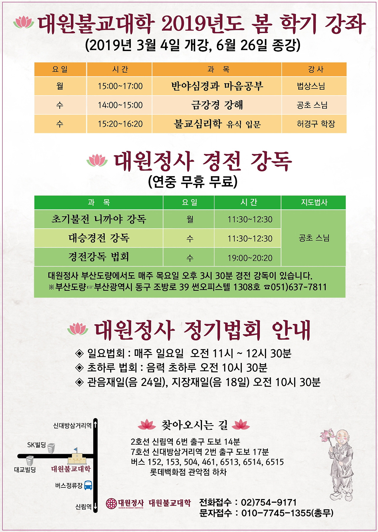 ❏ 문의/접수 : 대원정사 02-754-9171, 문자접수 총무 010-7745-1355