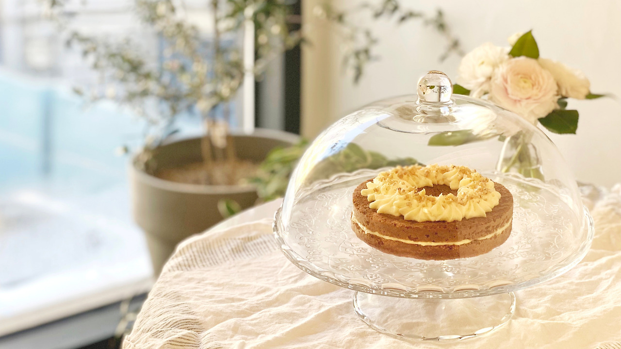 충분히 식은 케이크에 아이싱을 올려줍니다. (따듯한 케이크에 아이싱을 올리면, 아이싱이 녹아 흘러요.) 아이싱은 자유롭게 개성 있게 올려주세요. 케이크를 가로로 반을 잘라 사이에 아이싱을 발라주셔도 좋죠. 전 아이싱을 끝낸 후, 위에 호두 가루도 뿌려주었어요.