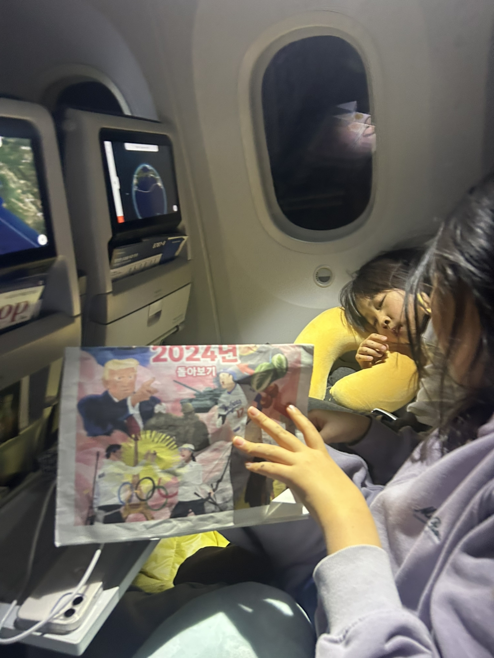 처음 타 본 에어프레미아는 기대 이상이었다. 이코노미 치고는 좌간 간격이 적당했고, (물론 체구가 작은 아이들과 내 기준일 것이다.) 화면에 영화들도 꽤 있어서 책도 읽고, 영화도 보고 시간을 보내기 좋았다. 창문은 이제껏 보지 못한 신식이었다.. 커튼을 치거나 마개를 덮는 게 아니라 조도를 조절할 수 있었다. 무엇보다 대한민국 대표 항공사를 탔을 때보다 아이들이 기내식을 잘 먹어주었고, 승무원 분들도 매우 친절했다. 사실 이런 게 중요한 건 아니다. 어쨌든 우리는 하늘을 날고 있으므로, 새로운 세계를 향하고 있으므로 행복하다.