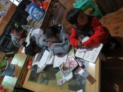 어쨌든, 내가 가서 보니 아이들이 하고 있는 숙제는 주로 두 가지였는데 하나는 장족어로 된 국어 숙제였고, 또 다른 하나는 중국어로 된 수학 숙제였다. 그런데 아이들은 전부 작은 연필 하나에 단 하나의 공책에 모든 숙제를 하고 있었다. 내가 왜 공책 하나에 숙제를 같이 하냐고 물어보니깐 아이들은 당연하다는 듯 공책이 없어서 그런다고 말했다. 아직도 이곳은 공책이 부족하다고 하니 기분이 이상했다.