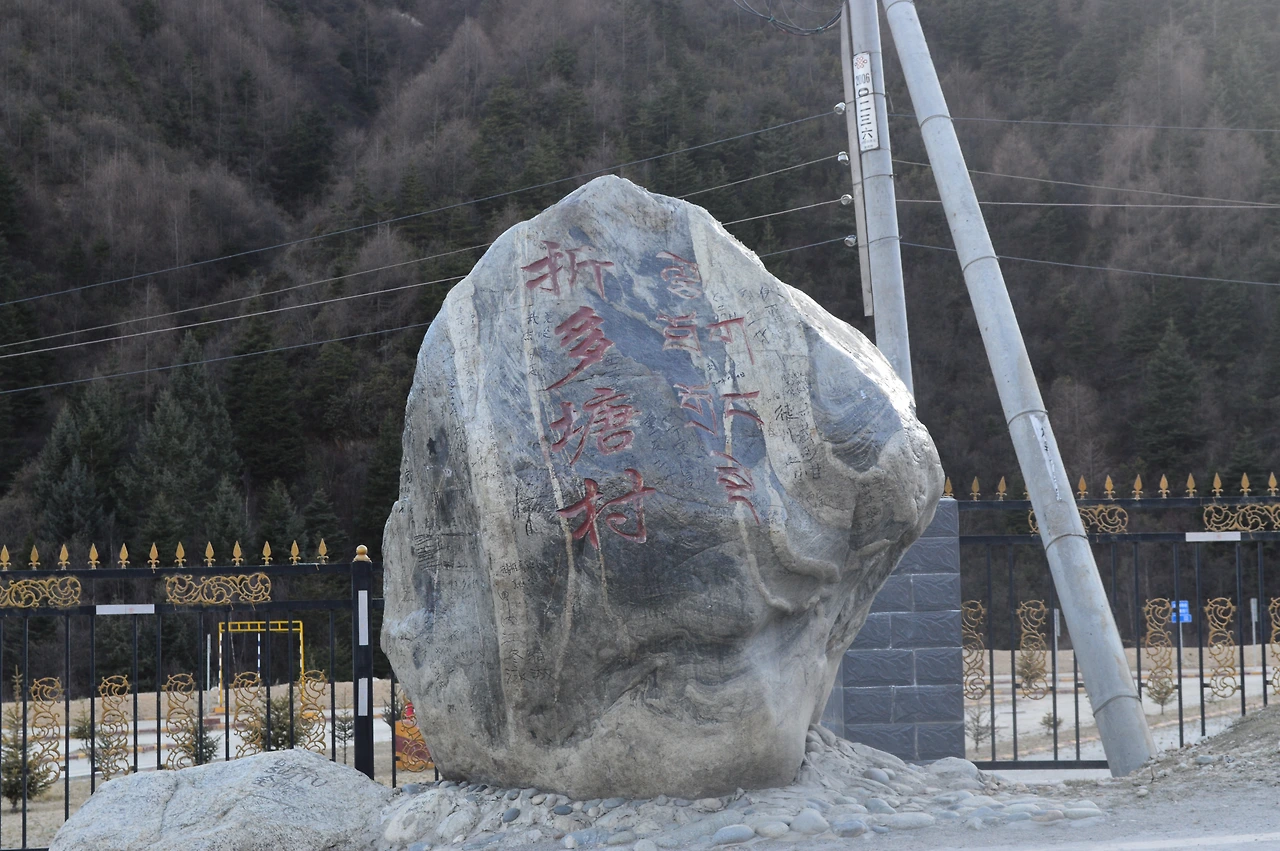 마을의 이름은 '져뚜어탕춘折多塘村'이었다. 주변에 있는 높은 산의 이름이 져뚜어탕산이라 마을 이름이 져뚜어탕춘이었다. 마을이라고 해봐야 길을 따라 드문 드문 늘어선 민가가 전부였지만, 그래도 이러한 마을이라도 있는 것이 참 다행이었다. 따거는 때마침 지나가는 마을 사람에게 숙소로 묵을만한 곳이 어디 있느냐고 물어보니 그가 조금만 더 가면 일반 티베트 민가를 확장해 객잔을 운영하는 집이 하나 있다고 알려 주었다. 그에 말을 따라 조금 더 걸어가 보니 정말 길 옆에 이 층으로 된 작은 객잔 건물이 하나 있었다.