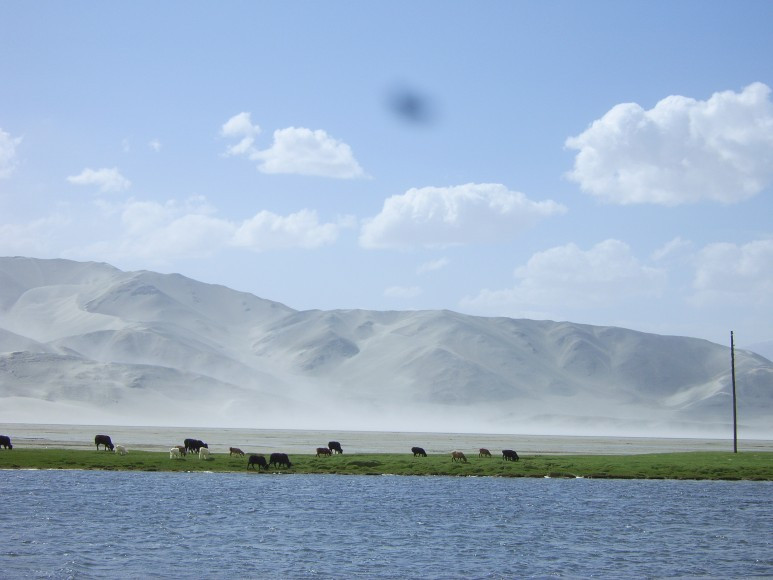 검문소를 지나 차를 타고 파미르 고원을 더욱 달리자 세찬 흙탕물이 여기저기에서 흘러내렸다. 따뜻해진 여름의 기온이 설산의 눈을 녹여 이루어진 일시적인 냇물들이었다. 그렇게 크고 작은 냇물들이 모여 낮은 지대에 작은 호수를 만들고, 거짓말처럼 건조하고 추운 고원의 호수 주위로 정말 비현실적인 푸른 초장을 이루어 냈다.