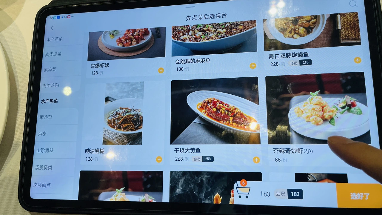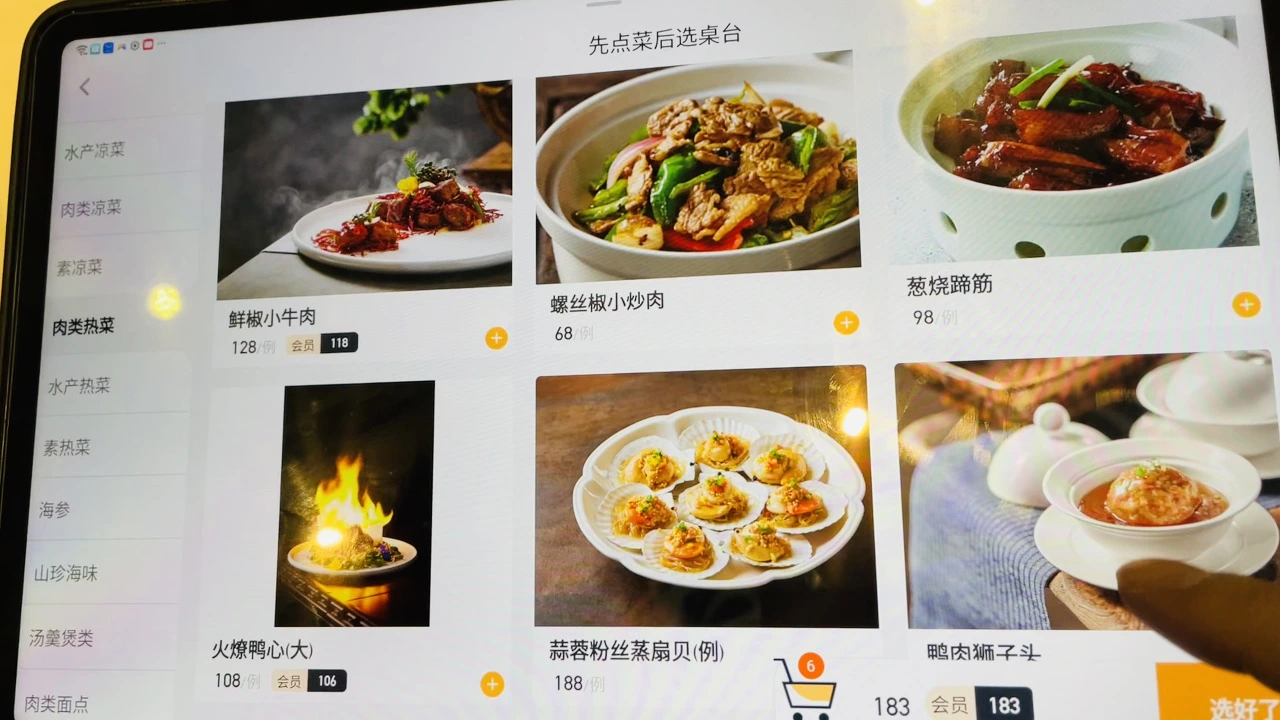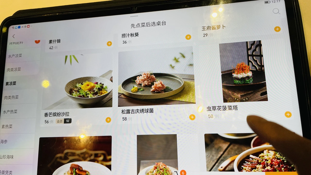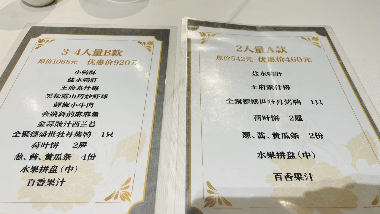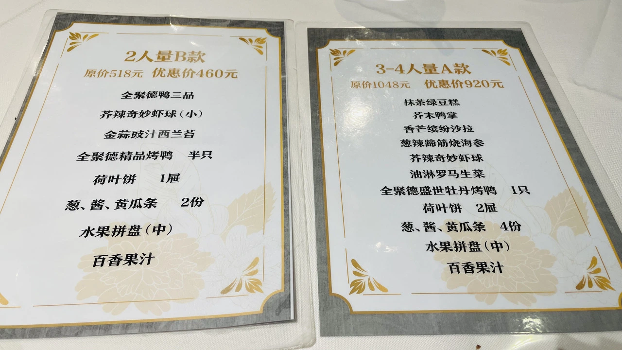 자리에 앉아서 세트 메뉴판을 스캔해서 번역기를 보고 있는데, 직원이 친절하게도 우리가 보고 있는 페이지는 양이 많다고 뒤쪽의 메뉴를 추천해 주셨다. 남편은 식탁 위의 아이패드로 사진을 보며 주문을 하기 시작했고, 카오야를 좋아해서 온 게 아니라 맛을 다시 보자고 방문한 거라서, 카오야 반 마리, 춘권, 야채 볶음, 밀전병 2개, 소스 세트 3개, 밥 3개, 음료수 3캔을 주문했다. 우리가 총 주문한 가격은 310 rmb로 한화 약 57,500원 정도였다.