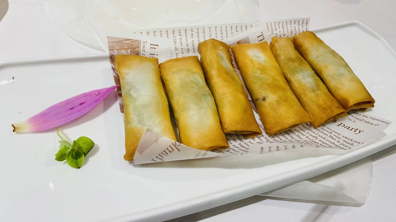 밥심으로 사는 우리는 밥과 뒤이어 나온 카오야의 살코기를 같은 방식으로 밀전병에 오이도 듬뿍 넣어 싸 먹었는데, 생각보다 괜찮은 맛이어서 이걸 안 먹어보고 중국을 떠났으면 후회할 뻔했다며 극강의 부드러움에 빠졌다. 그래도 오일리함이 있긴 해서 탄산음료는 우리한테는 필수였다. 갓 튀긴 춘권과 생야채볶음(공심채도 아니고, 중국 식당에서 좋아하는 야채인데 아직도 이름을 모른다.)도 간이 딱 괜찮았다.