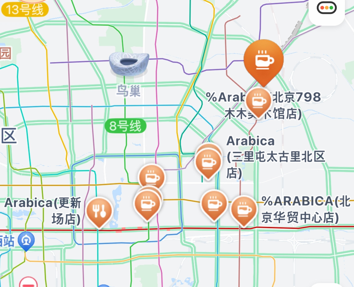 집에 와서 검색해 보니 퍼센트 아라비카(% ARABICA)는 홍콩, 일본, 뉴욕, 런던, 파리 등지에서 유명세를 시작으로 한국에서는 1호점으로 스타필드 코엑스몰점과 한남동에 샵인샵 형태로 매장을 운영 중인 카페였다. 베이징 지도에서 검색해 보니 현재 10개의 체인점을 운영 중으로 사회주의인 중국이지만 시장 경제가 규모가 크다 보니 해외 브랜치에 대해서 자본 투자가 많이 되는 것 같다. 인구가 많으니 팔리는 커피 수도 어마어마할 듯하다.
