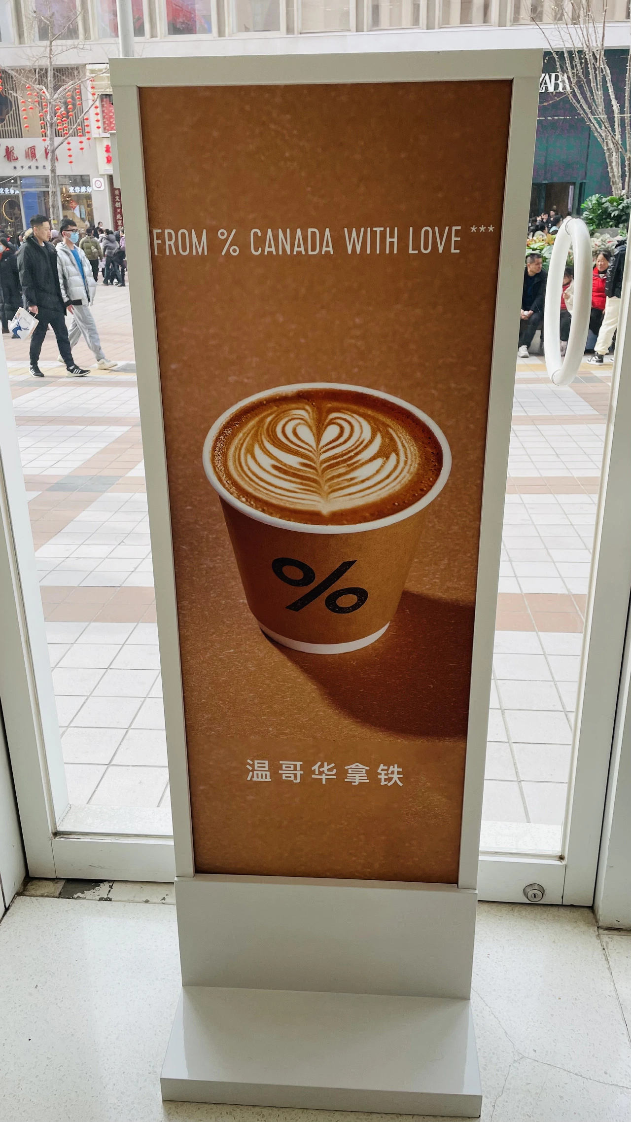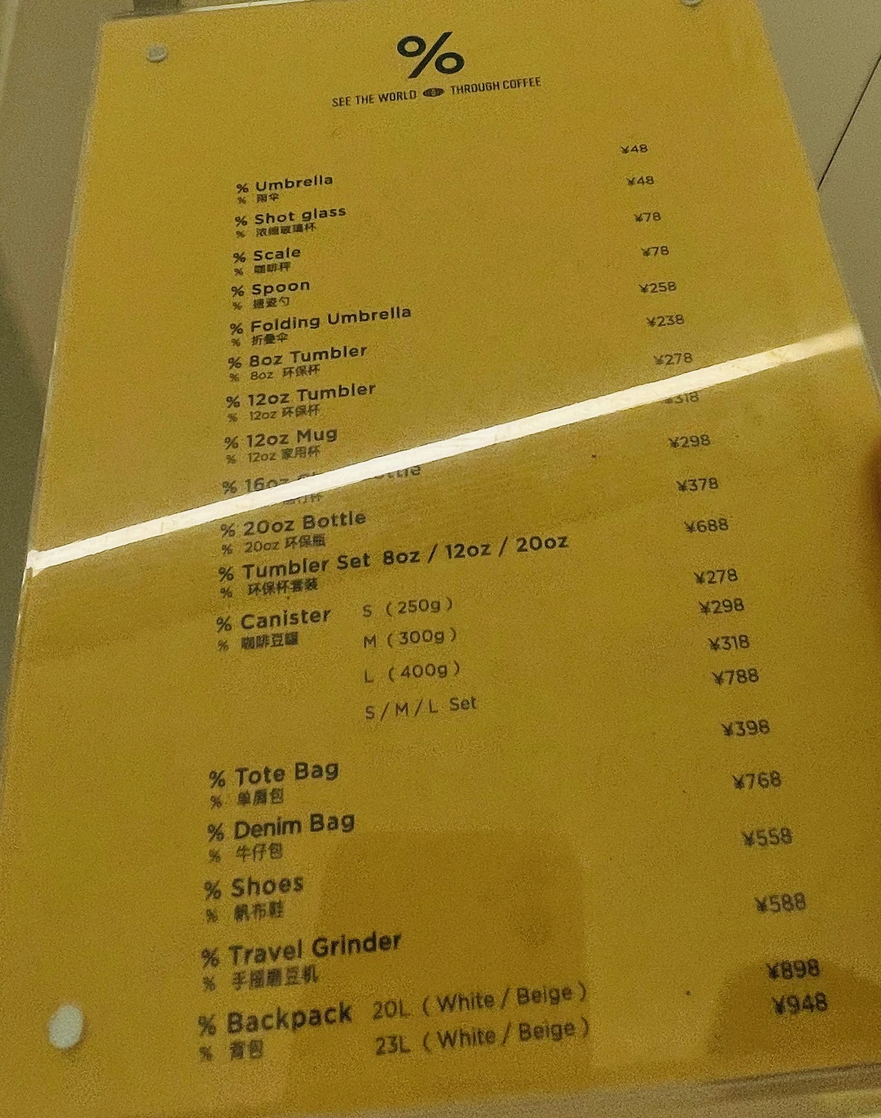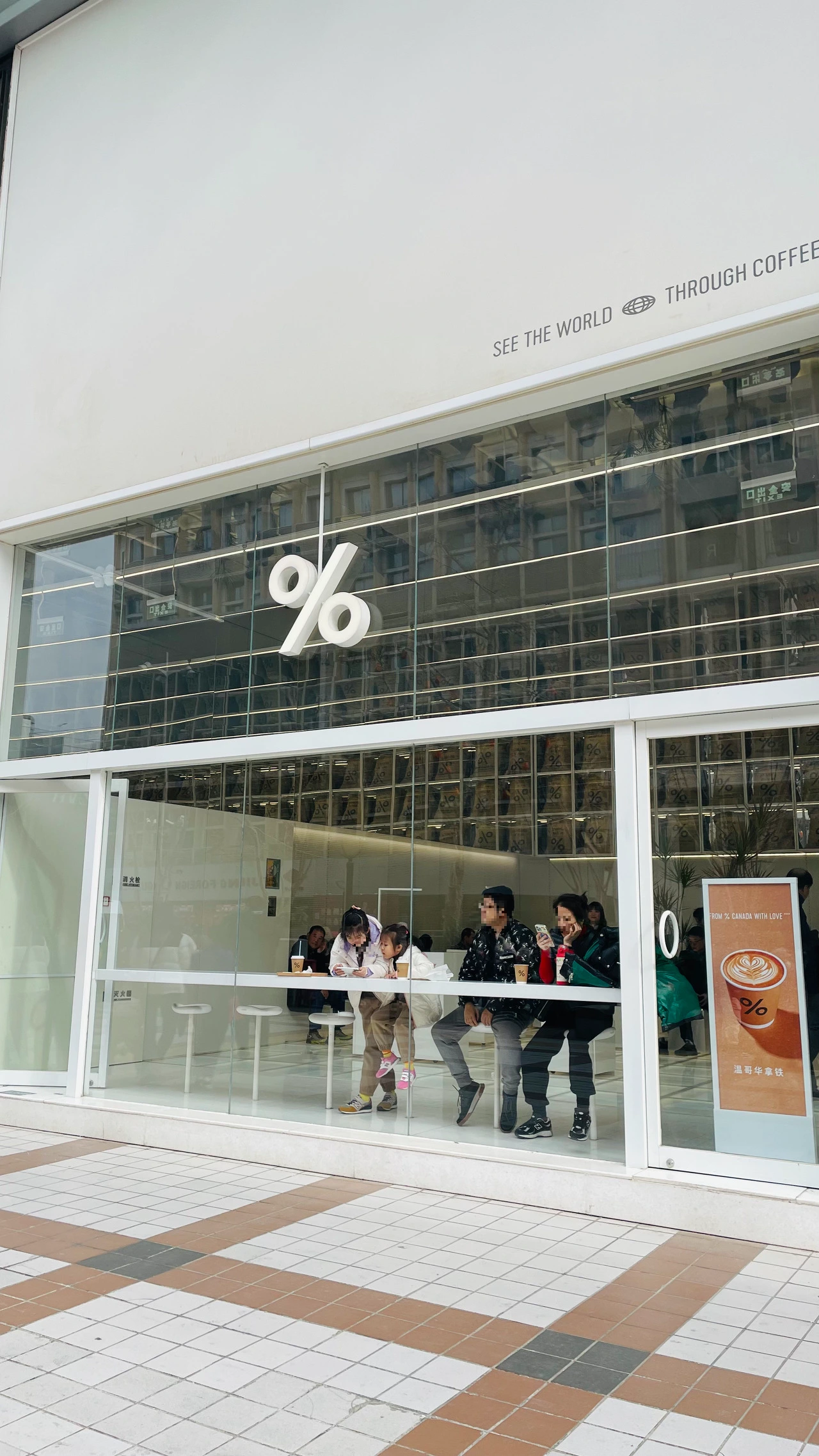 왕푸징의 거리를 걷다가 새하얀 깔끔한 인테리어와 간판에 웬 퍼센트(%) 기호가 중앙에 딱 박힌 모습을 보고, "여기는 어디지?"라며 유행에 아주 뒤떨어진 40대 부부는 홀린 듯 카페로 발걸음을 옮겼다. 내부 인테리어 또한 절제된 깔끔함과 단순함과 새하얀 화이트톤이 커피 한 잔을 해보고 싶다는 생각을 들게 만들었다.