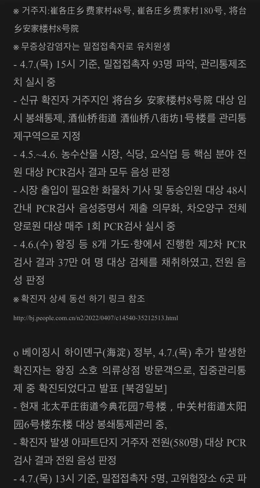 코로나만 아니었다면, 중국 전역을 여행도 하고 정말 주재 기간 동안, 제대로 된 해외살이를 했겠지만, 안타깝게도 전체 기간 중 절반의 기간은 숨통을 쪼여가는 중국의 이상한 방역법으로 인해서 말도 안 되는 오해와 GPS 추적으로 인하여 연락을 받기가 일쑤였고, 코로나에 걸리면 임시시설인 팡창이란 곳에 끌려갈 수도 있다는 불안감 등, 그로 인해 그 기간 동안 중국에 대한 미움으로 가득 찬 시간을 보냈다. 엉터리 빅테이터를 가지고 가지도 않은 곳에 간 나를 추적해서 단지로 연락이 오고, 이름과 여권 번호를 제출하라는 등, 백신은 맞았는지, 몇 회를 맞았는지, 모르는 곳에서 중국어로 오는 전화는 정말 공포 그 자체였다. 당장 오늘 PCR 테스트를 하고 결과를 제출하라고 요청받기도 했다.
