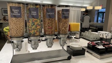시차 적응이 안 되어 밤에 자꾸 눈이 떠졌고, 그때도 기분은 얼떨떨했다. 아직 직접적으로 미국을 부딪쳐보지 않아서 그냥 한국에 있는 느낌과 별반 다르지 않았다. TV를 트니 미국 방송이 나오고, 아날로그틱한 전등스위치, 카펫 바닥, 배수구 없는 화장실, 사람이 많이 돌아다니지 않는 텅 빈 거리 등에서 조금씩 이곳이 미국이구나를 실감했다. 장거리 비행으로 남편과 나는 고질적인 일자목과 디스크 증상이 와서 매일같이 스트레칭을 하며 몸에 탈이 나지 않도록 조심했다. 호텔 조식에는 다행히 밥, 된장국, 김이 있어서 식빵, 베이글, 와플, 토스트, 각종 머핀들과 스크램블 에그 등의 아메리칸 스타일 조식과 더불어 배불리 먹었지만 호텔 생활이 오래될수록 같은 메뉴에 질려가기 시작했다.
