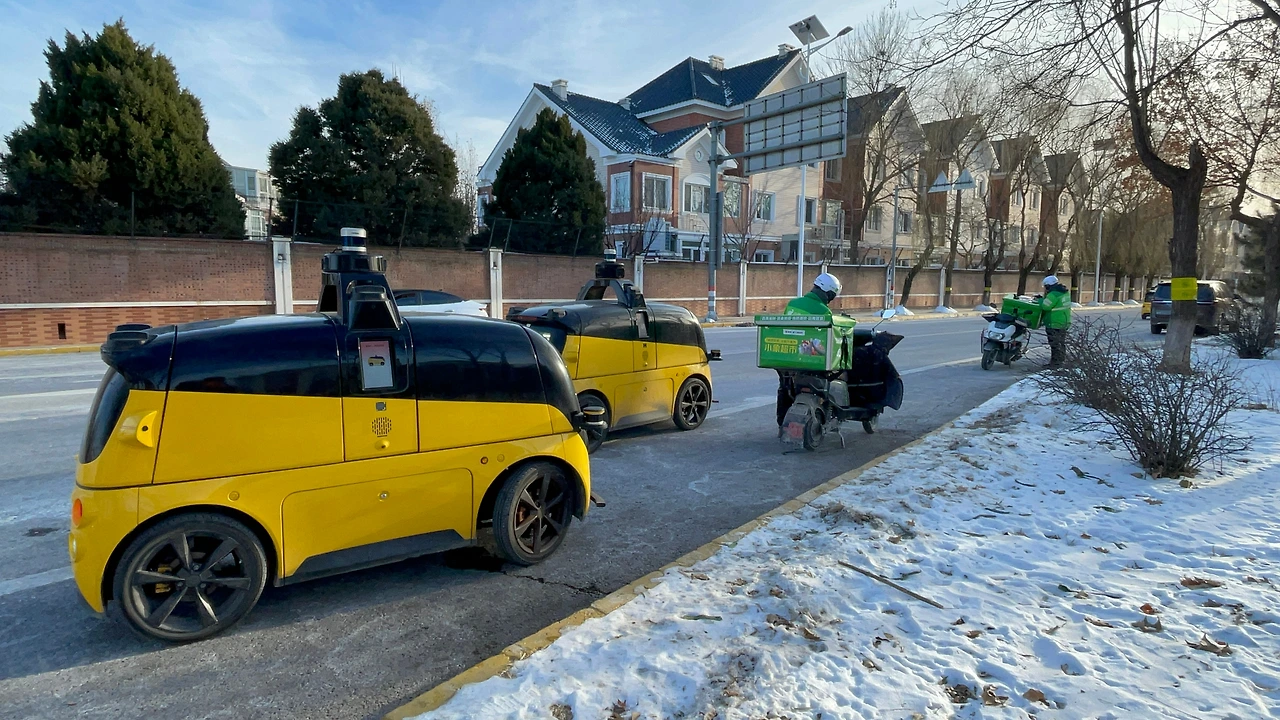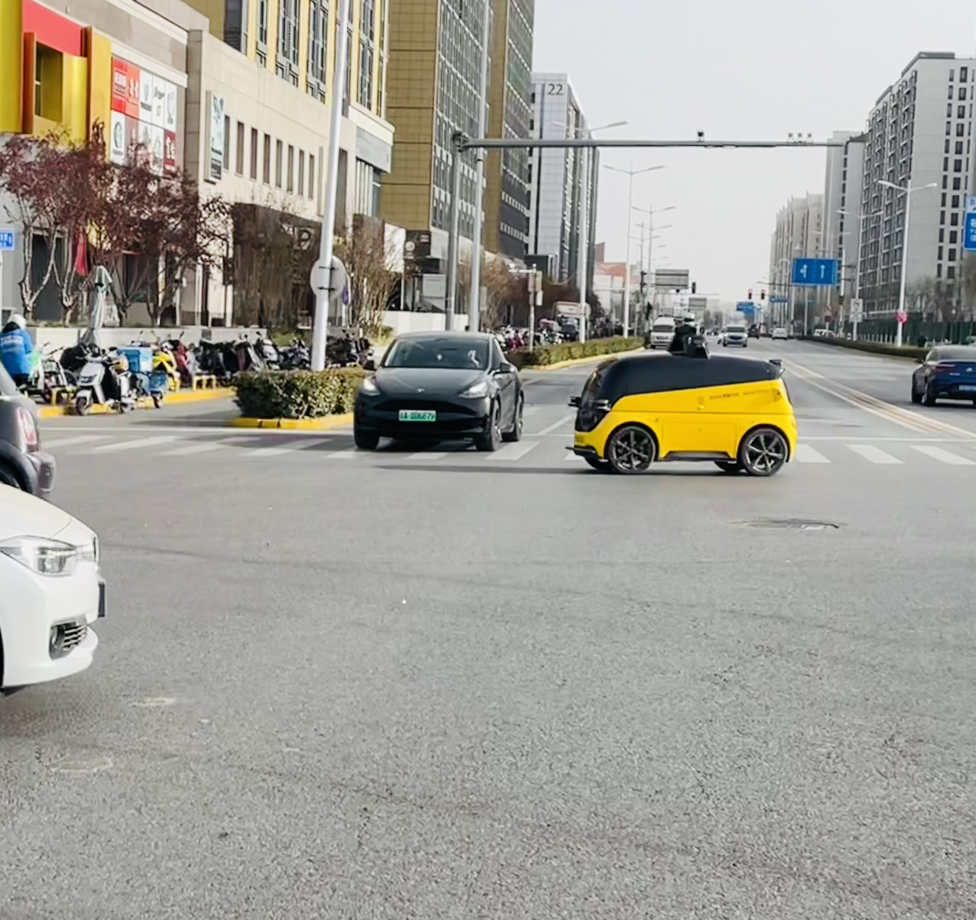 초기에 이 노란 자율주행차는 혼자 다니지 못하고, 오토바이를 탄 메이투안 배달업체 직원과 함께 마치 1인 1조의 경기를 하듯이 함께 달렸다. 그리고 달리는 속도도 아기의 걸음마 수준처럼 느리게 달렸다.