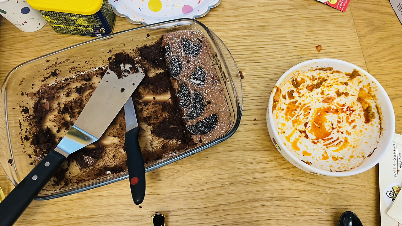 가장 뿌듯했던 건 역시 홈메이드 케이크가 불티나게 팔렸다는 거다. 아들이 가장 기분 좋아했던 순간이기도 하다. 엄마가 자신 없어하며 만든 걸 외국 친구들이 잘 먹었을 때, 자기가 덜어주며 신이 나셨을 모습이 상상된다.