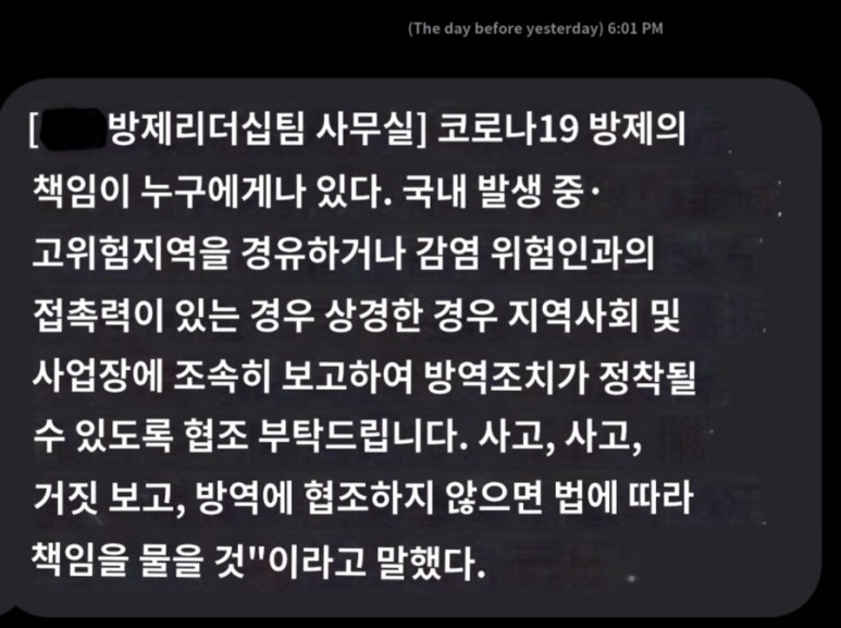 너희 언제 그곳, 코로나 환자가 발생했던 곳, 거기에 방문했지? 너의 정보가 잡혔어.