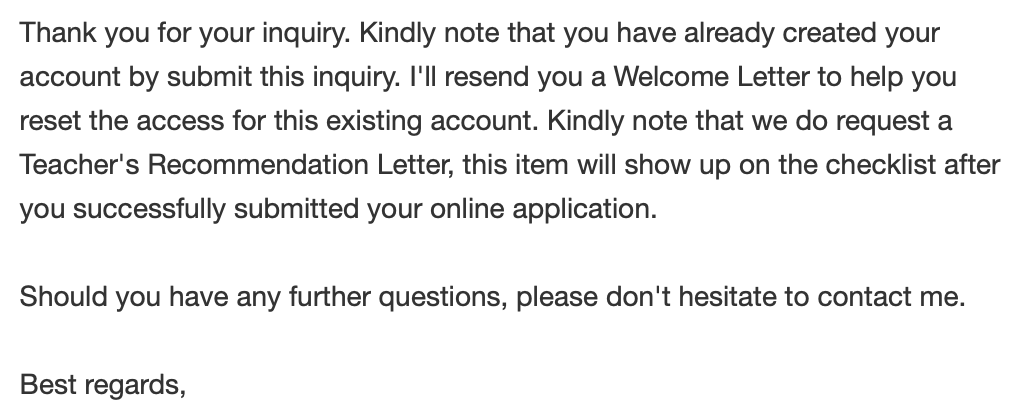 결국, 수 주일에 걸친 인터넷 검색을 통해서 학교를 추리고, 관심 있는 학교 측의 Adimission 담당자한테 이메일을 보내서 TO를 먼저 확인했다. TO가 있는 경우라고 해도 입학 지원 시기가 너무 아슬아슬했다. 우리가 중국 주재원 발령에 대한 최종 통보를 받은 건 3월 말이고, 국제학교는 6월 중순에서 말 안에 보통 여름 방학이 시작된다. 또, 중국은 4월 초에 청명절이라고 해서 Spring break 연휴로 학교가 1주일 쉬기도 해서 학교와 연락이 또 안 되기도 하고, 처음 해보는 해외 국제학교 지원 준비에 매일같이 영어와의 싸움을 하며 시간을 보냈다.
