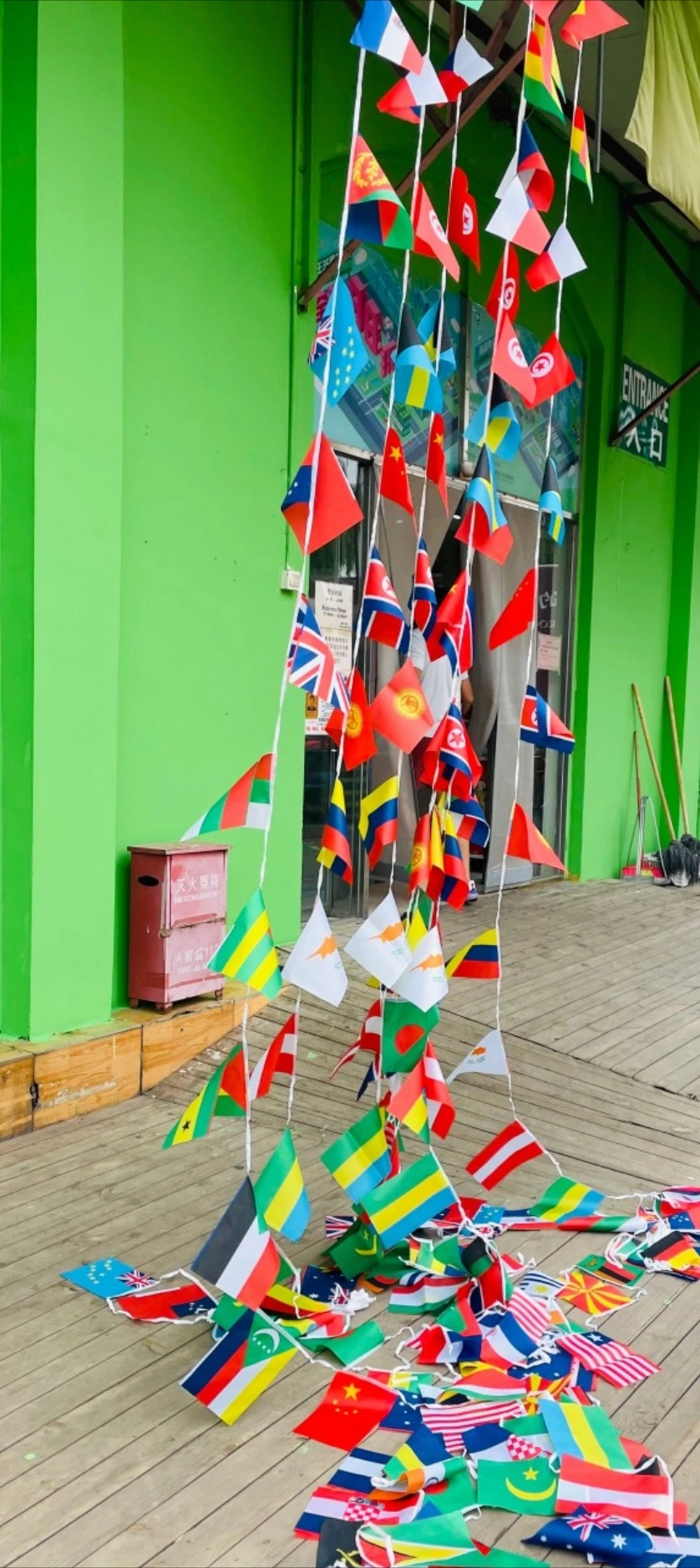 맞다, 여기 중국이지? 아마 중국과 친한 우방국 위주로 국기를 걸어놓은 게 아닌가 생각을 하며, 마트 장을 보고 나오니 어느새 만국기가 하늘에서 펄럭이고 있다.