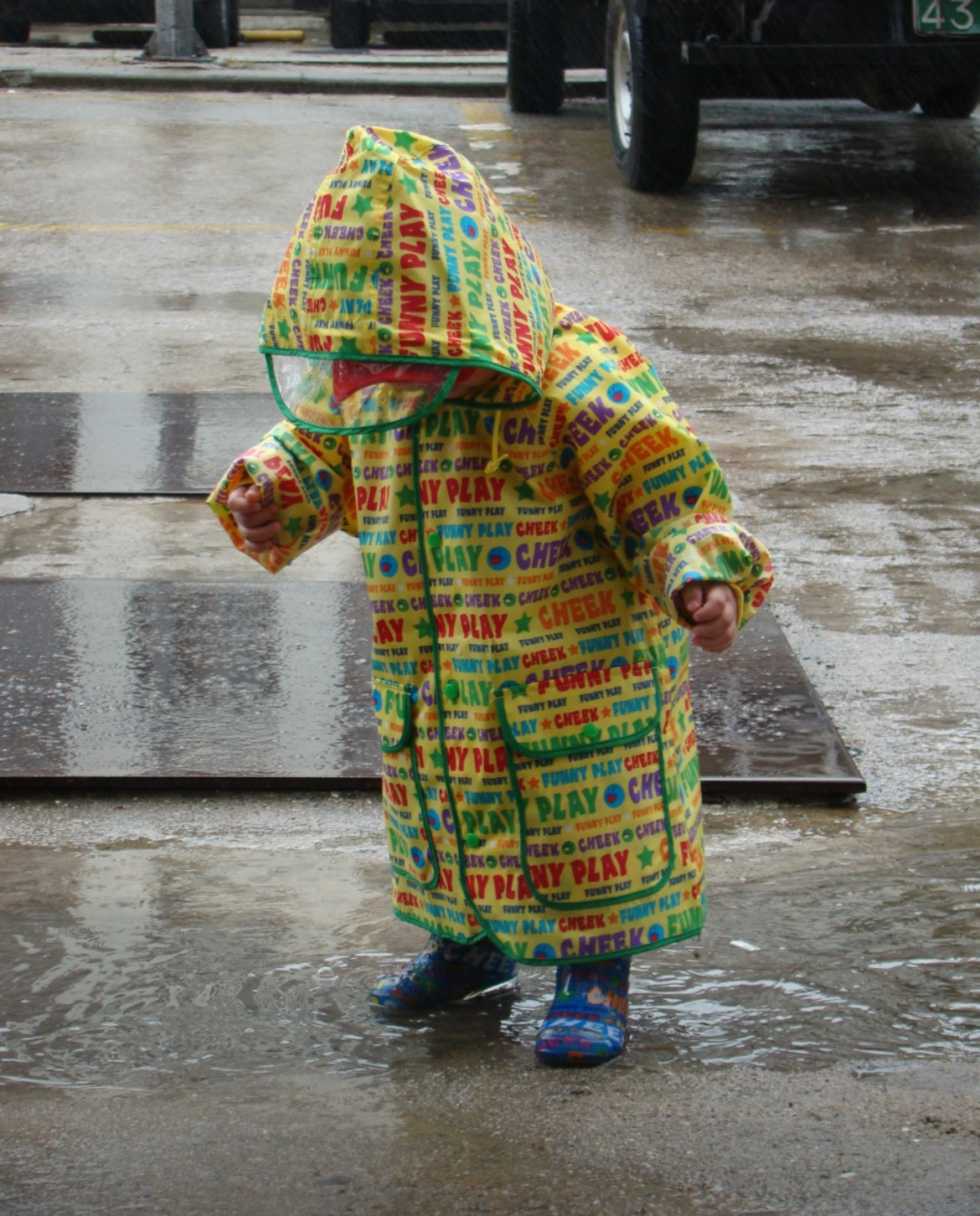 비 오면 우비 입히고 장화를 신겨서, 비가 고인 웅덩이에서 첨벙첨벙 놀게 하고, 눈이 오는 날이면, 눈 가지고 놀다가 집으로 눈을 한 양동이 퍼서 들어오고, 어느 날은 봉지랑 집게를 들고나가서 쓰레기 줍기를 놀이 삼아했다. 내가 요리할 때는 옆에서 놀 수 있게 밀가루를 준비해 주거나 야채나 과일 등을 주고 직접 만지며 놀 수 있는 환경을 주었다. 씻을 때는 욕조에서 놀며 타일에 페인팅하고, 보트에 바람을 넣어서 좁은 베란다에서 물놀이를 할 수 있게 낚시감을 던져주고, 나름 눈코 뜰 새 없이 바빴다.