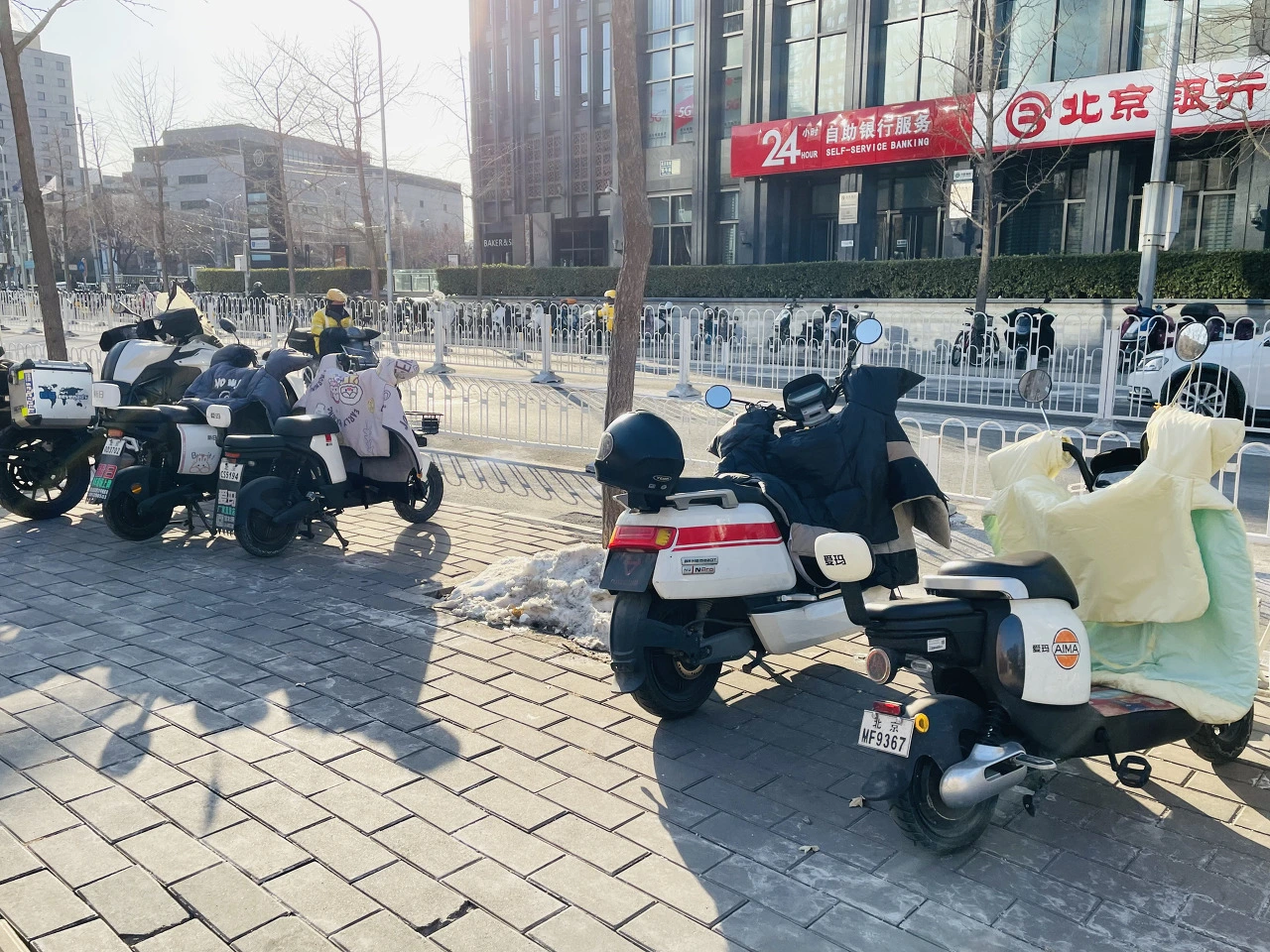 최근에 베이징에 놀러 왔던 동생네 부부도 이 거리의 오토바이 바람막이를 보고 저거 뭐냐고, 처음에 오토바이에다가 빨래를 널어놓은 줄 알았다고 해서 엄청 웃었던 기억이 난다. 그 정도로 흔한 풍경이다.