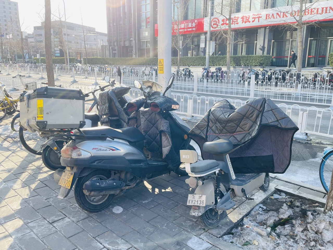 처음 중국에 왔을 때 거리에 전기 자전거와 전기 오토바이, 스쿠터 이용자들이 줄지어 다니는 모습에 놀래기도 했지만, 겨울이 되면 모두 똑같은 모습의 오토바이 방한복 같은 바람막이 혹은 담요부대의 출연으로 "저건 이불인가?"라며 신기해서 쳐다봤던 적이 있다. 얼핏 보면 아기 이불 같기도 하고, 담요 혹은 포대기 같은 모습으로 장갑과 담요를 합쳐놓은 스쿠터 바람막이 부대를 거리의 이곳저곳에서 볼 수 있다. 오토바이 장갑이 팔뚝까지 온 긴 장갑도 볼 수 있다.
