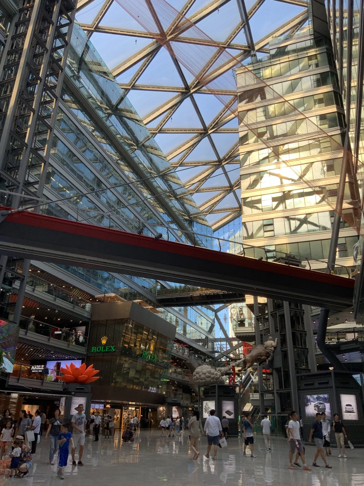 특히 파크뷰 그린은 우리가 가봤을 당시에도 미술관을 방불케 하는 눈이 휘둥그레지는 쇼핑몰이었다. 외관이 유리 피라미드 모양에, 내부의 여러 설치 미술과 조각들은 꼭 쇼핑을 하지 않더라도, 예술 작품을 보는 재미가 있는 화려한 곳이다.