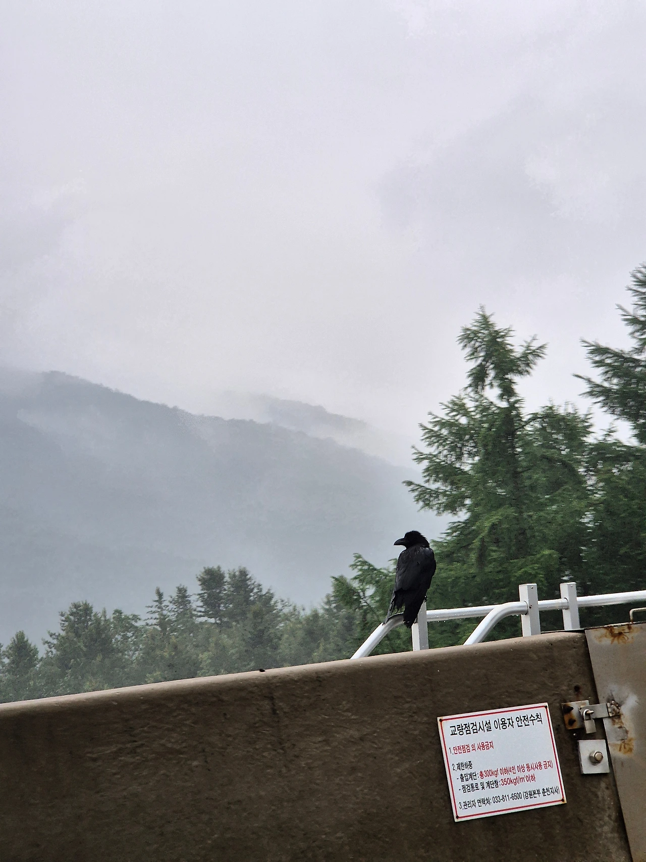 @비가 잦아들자, 잠시 쉬어가는 까마귀씨