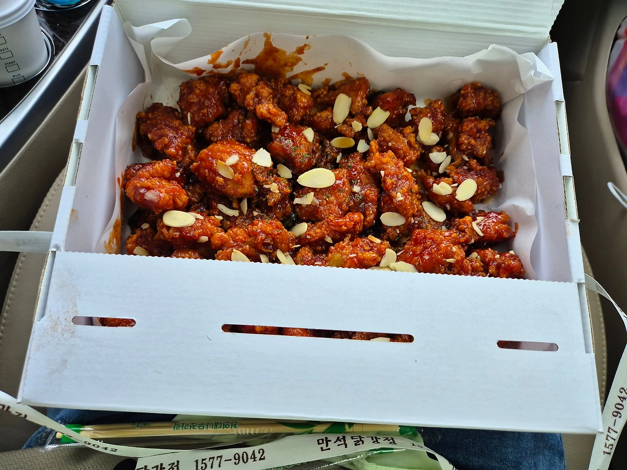 치킨보다 닭강정 파인 나는 간식 삼아 닭강정을 사 오려고 했지만, 그렇다고 굳이 중앙시장까지 가서 만돌 닭강정을 살필요는 없었다. 그럼에도 주변에 치킨집은 죄다 리뷰 3-4개만 달랑 남겨진 곳이어서 별 수 없이 6킬로미터 떨어진 본점이라고 하는 콘크리트 건물에서 식은 닭강정을 사 왔다. 늘 만돌 닭강정 측에선 식어야 더 맛나다고 하지만,