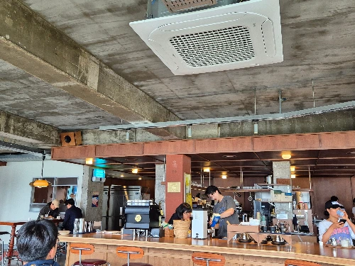 이토록 공간이 충분한 대형카페에도 사람들이 좋아하는 전망을 확보한 좌석들이 있기 마련이다. 제주에 머문적도 있어 딱히 최고의 전망이 보이는 자리를 원한 것은 아녔는데
