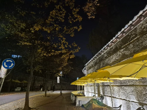 금빛 노을로 물들인 빌딩과 노릇해진 도심의 단풍, 시청 앞 빈백 위 쉬어가는 시민들