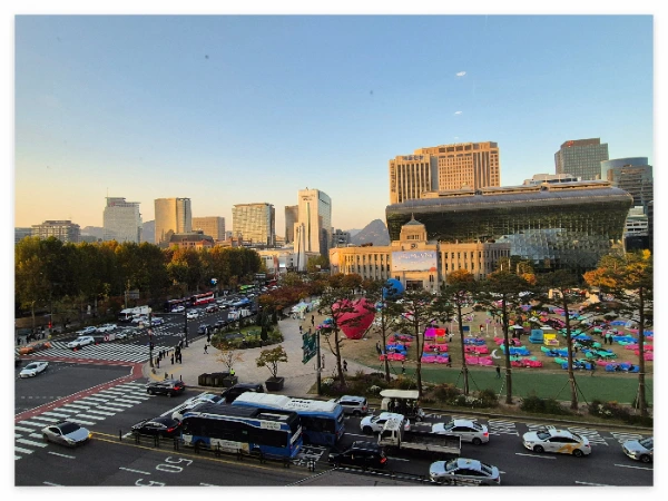 느지막한 오후다. 회장을 벗어나 잠시 나온 발걸음에 눈앞에 펼쳐진 시청역 앞 광장을 마주했다.