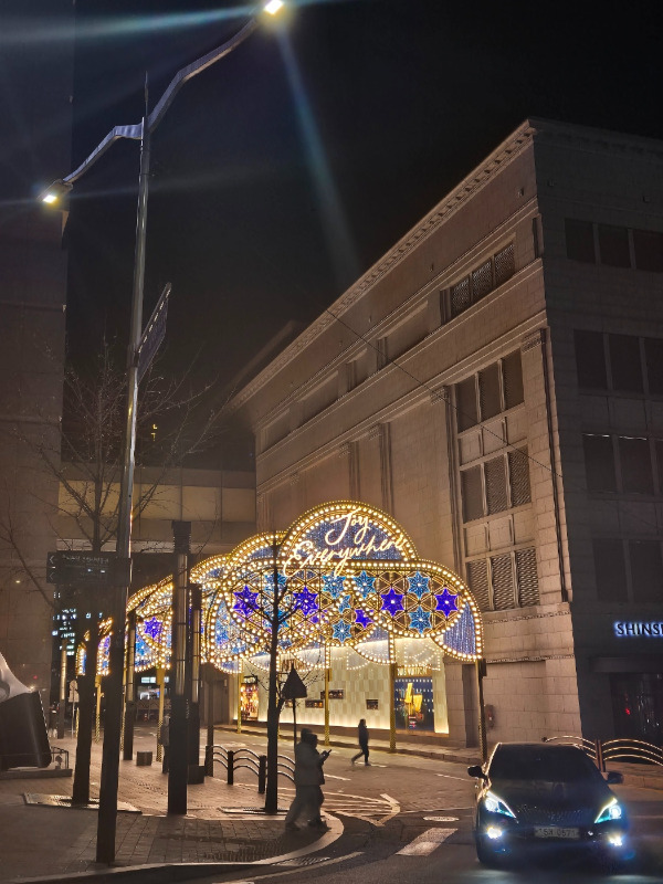 연말,명동의 거리는 깨끗하다. 20년 전 서울시에서 한동안 '쓰레기없는 중구'라며, 쓰레기통을 없애버린 까닭에 넘쳐나는 쓰레기가 갈 곳을 못 찾던 때와 대조적이다. 쓰레기를 쓰레기통에 잘 넣으면 좋은데 그 주변에 아무렇게나 던지는 사람들이 있으니 서울시가 쓰레기통을 없애는 정책을 채택한 것이다. 어쨌든 (쓰레기통이 있음에도) 지금은 너무나 깨끗해져서 어깨에 코리안 뽕이 차오른다.
