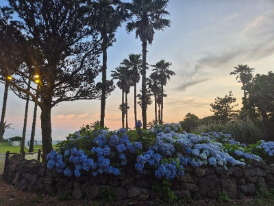 제주의 길에는 생각지도 않게 수국이 꽃다발로 놓여있었다.엄마에게 수국을 보여드리고 싶었는데!