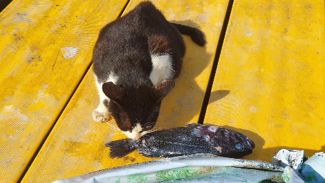 열심히 갈치를 뜯어먹고 있다가, 좀 있으니 선주가 던져준 우럭 한 마리 던져주면 맛있는 부위만 먹고 들어와 자는 식이다. 그러고 나서 하품하다 일어나 돔을 먹는 루틴이었다. 그런데 말랐다.