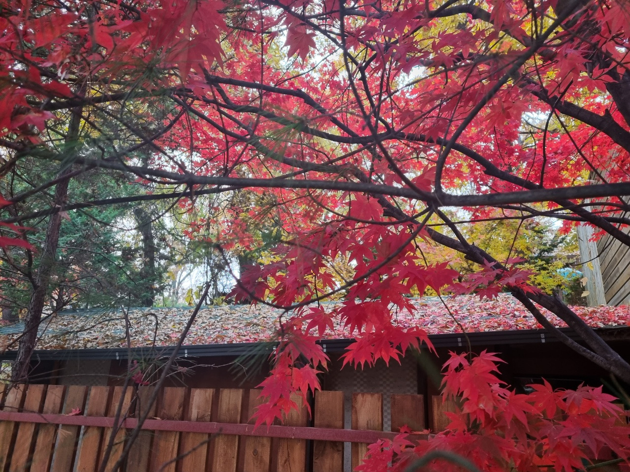 시작하기 전 금요일 아침, 누군가의 지붕에 깃들인 단풍잎