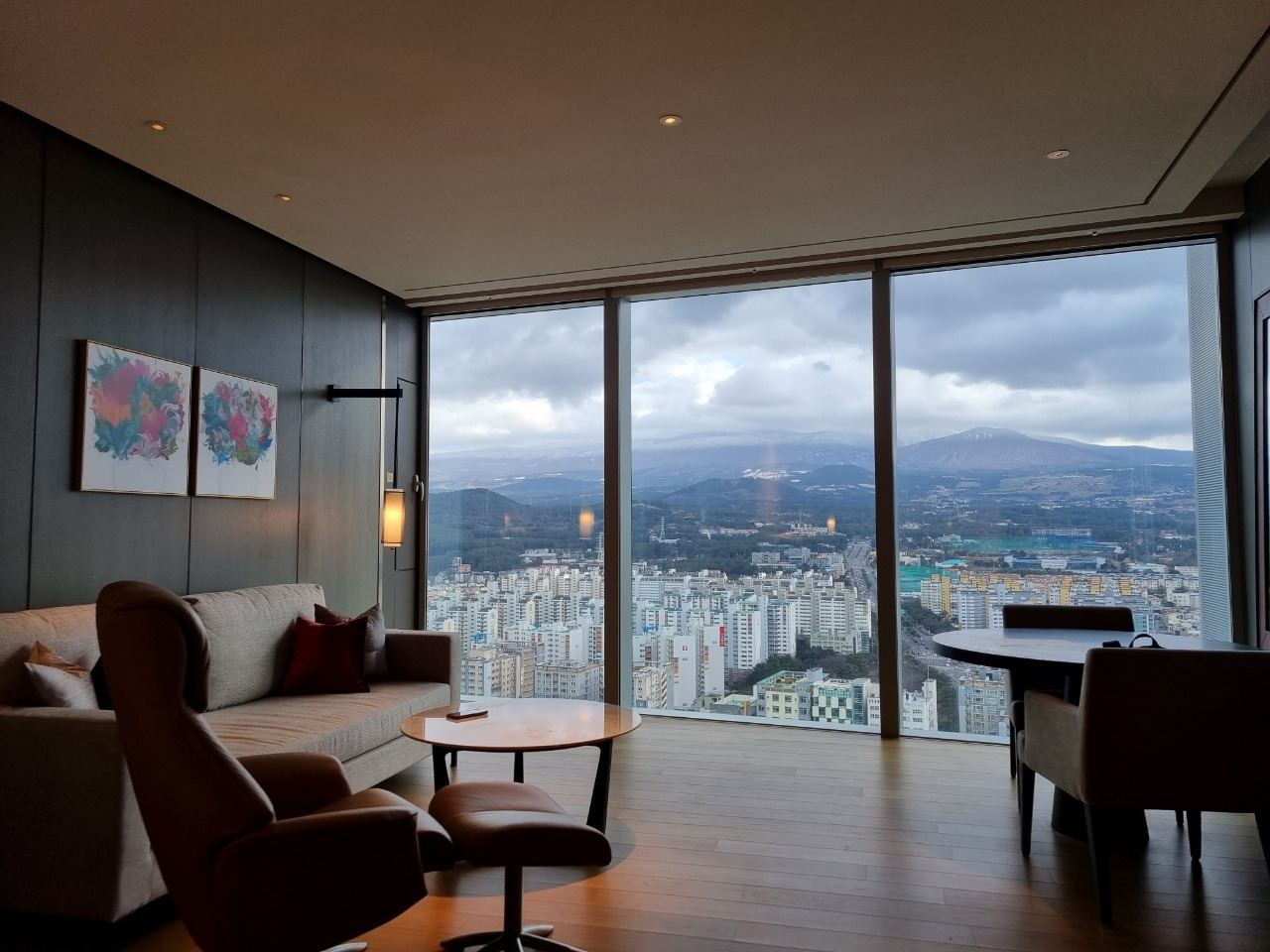 처음 "결혼기념일이에요"라고 밝혀서 24층 한라산 뷰로 업그레이드 서비스를 받은 것이다.