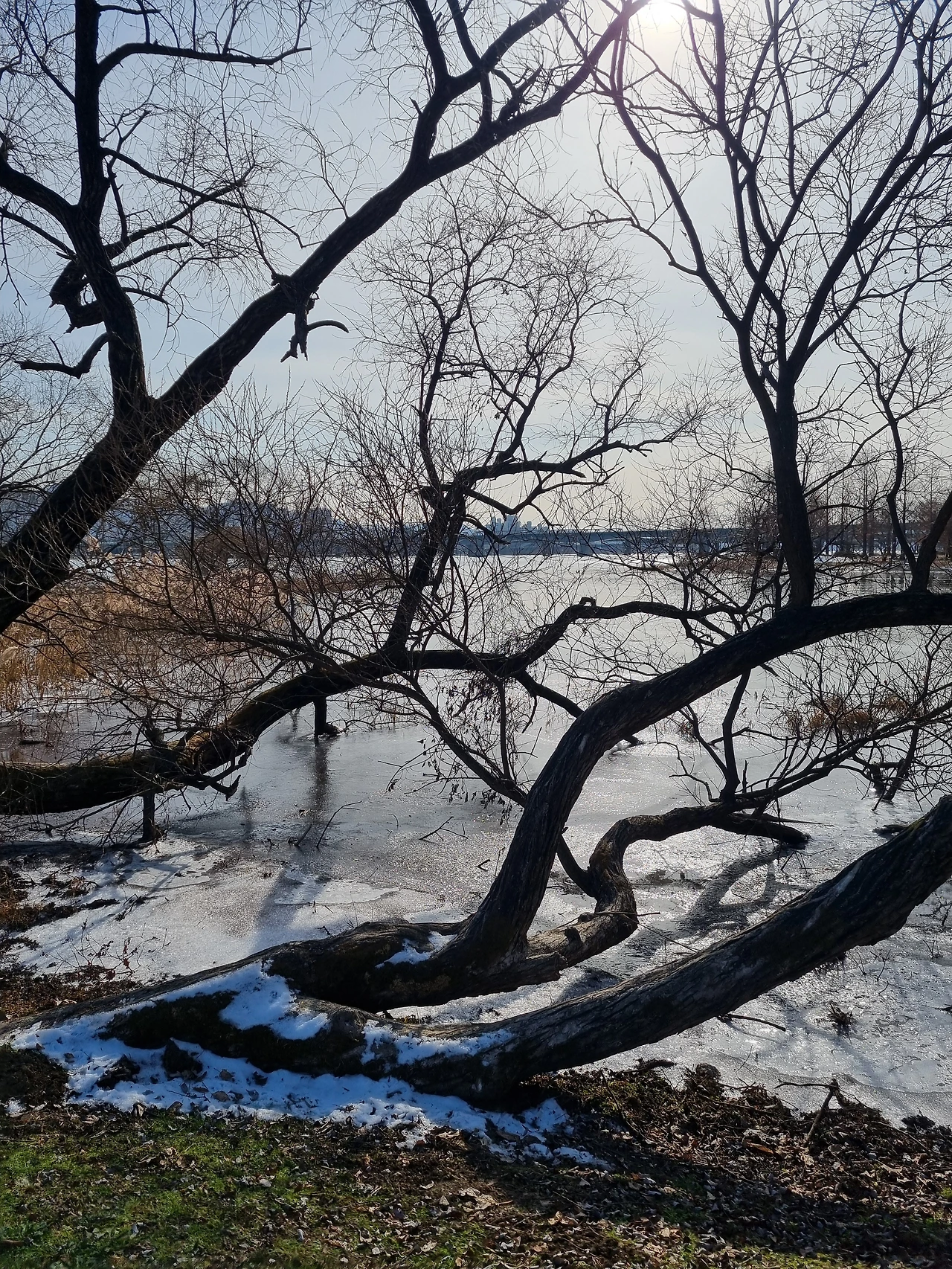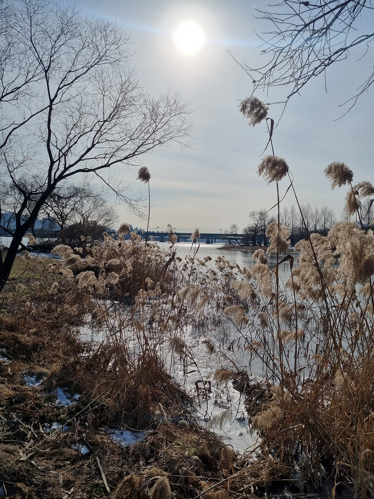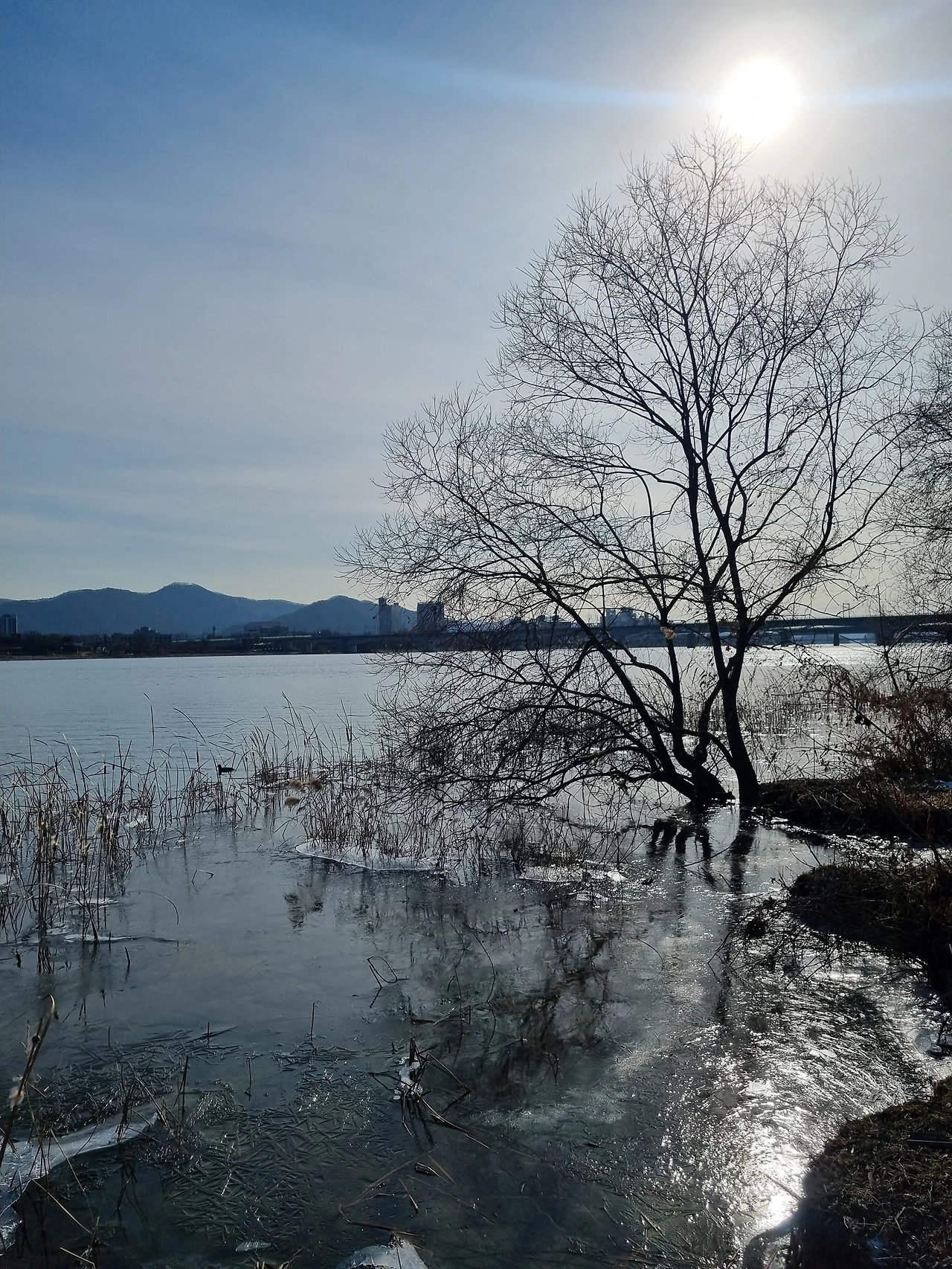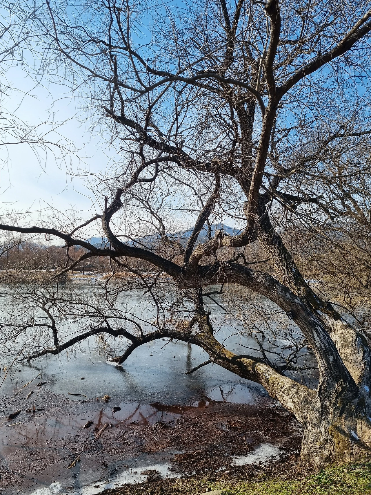 '강과 나목, 햇볕, 그리고 칼바람 모두 고마웠어. 걷는 즐거움을 줘서, 함께 해 줘서'