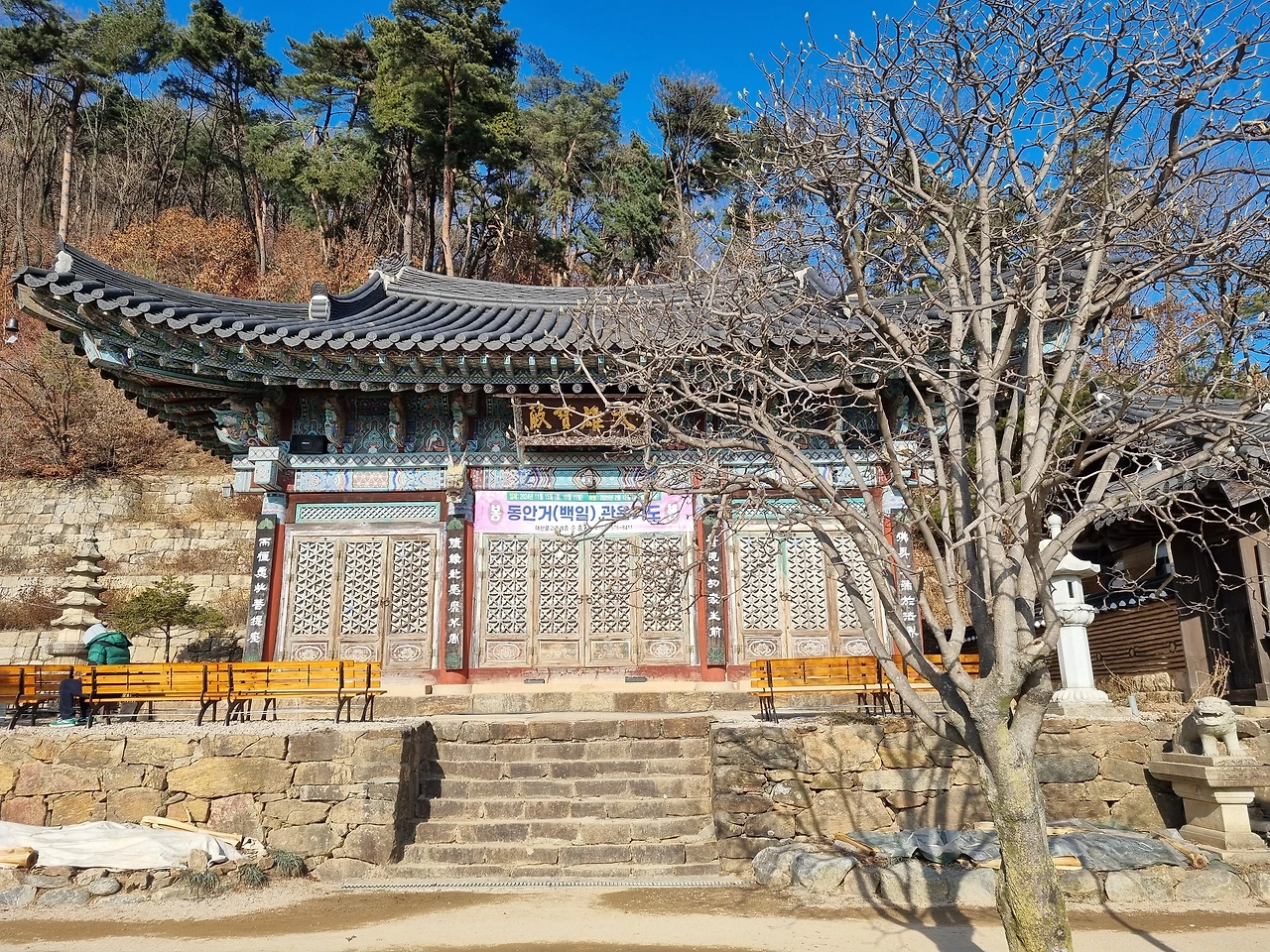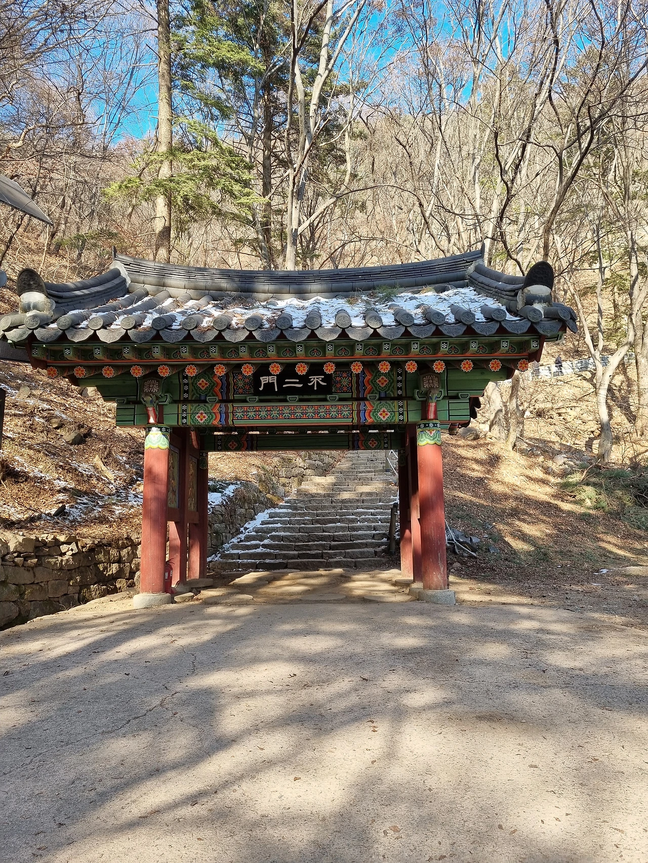 사찰입구에서 불이문과 해탈문을 지나야 사찰이 드러난다
