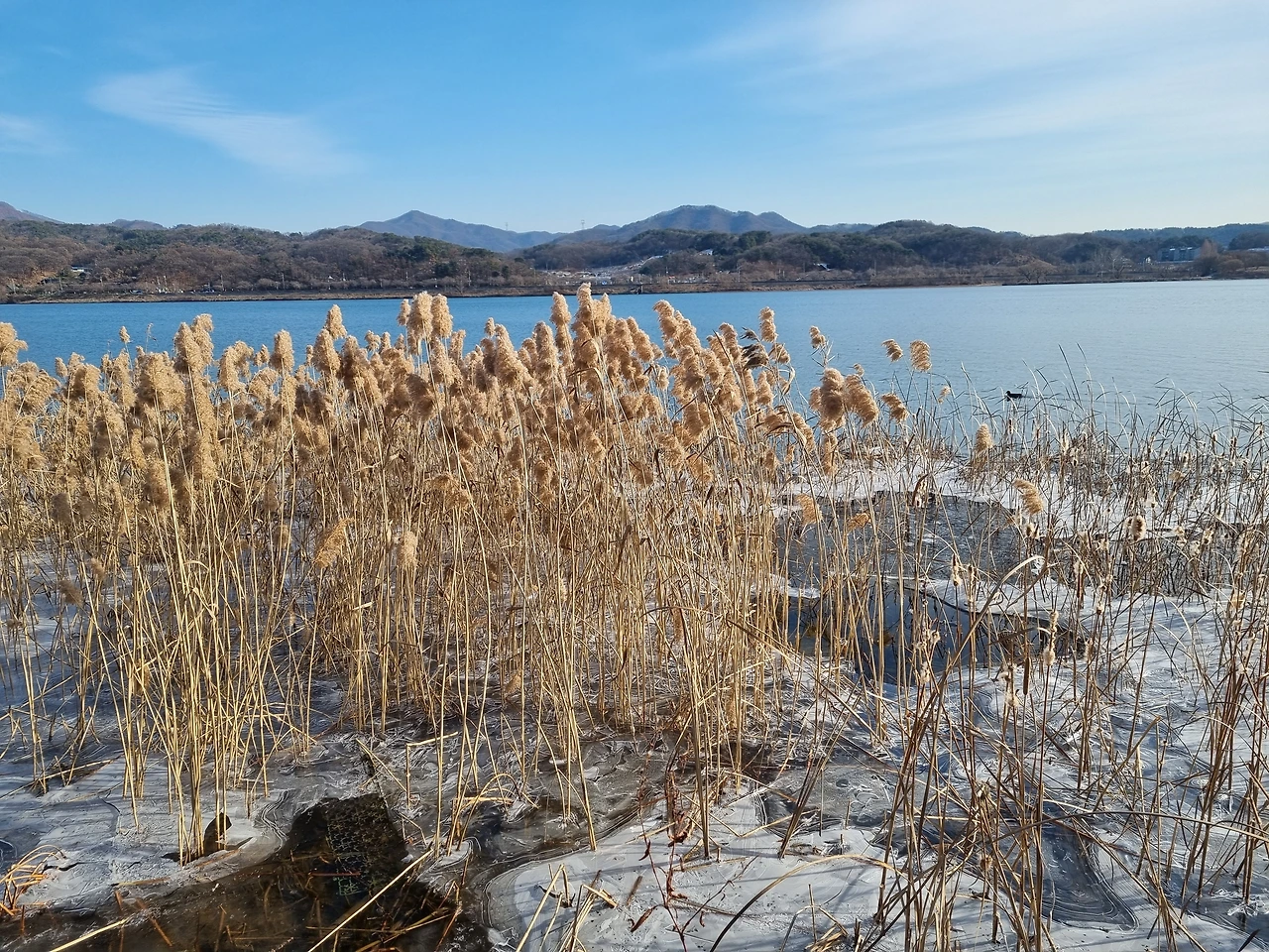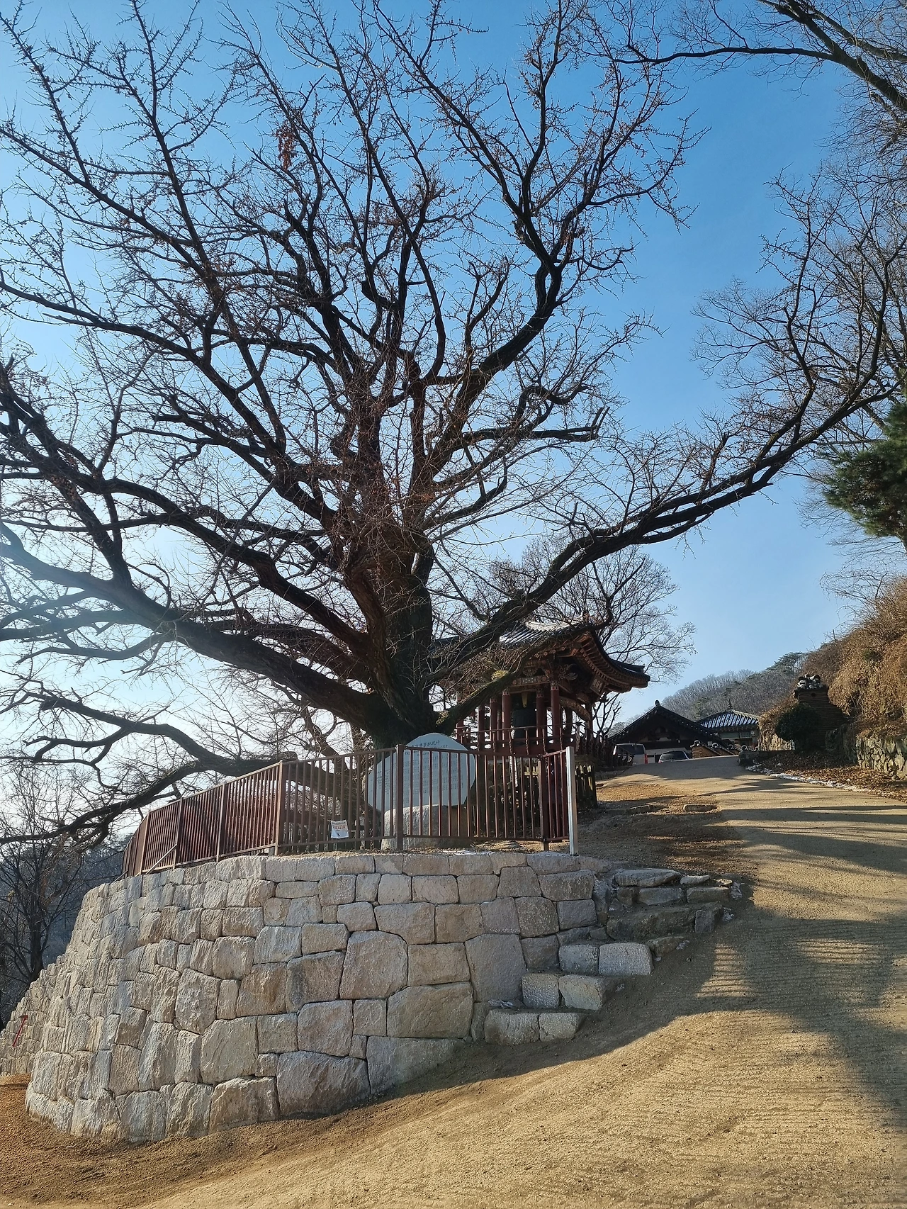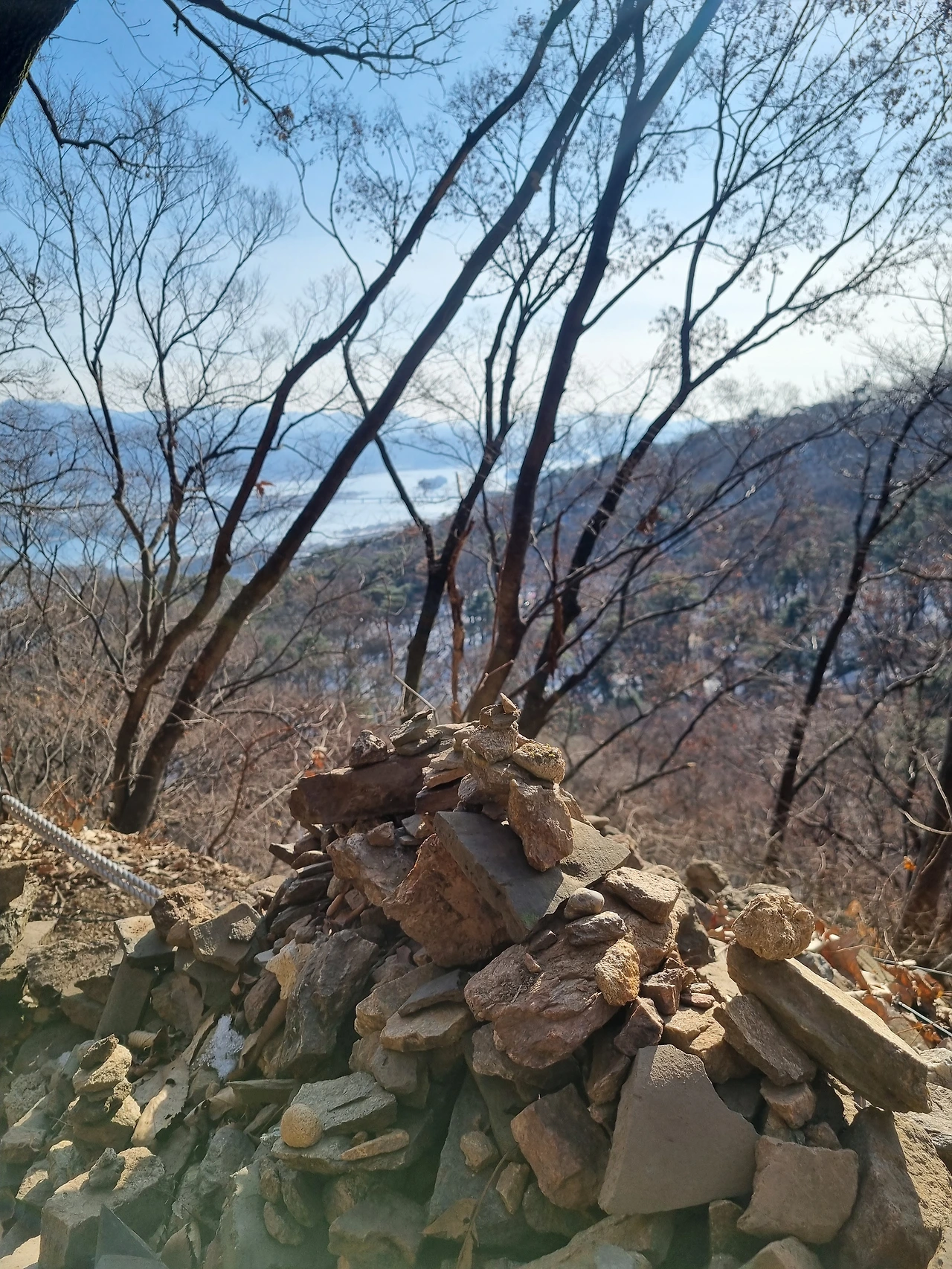 평평한 곳에서 가파른 곳까지 올라갔다 내려오는 길, 별 거 없는 것 같아도 모든 것이 숨을 죽이는 고요 속에서 아늑함이 깃들어 있었다. 파란 하늘과 따스한 햇살이 칼바람을 뚫고 나아갈 수 있게 등뒤에서 나를 밀어주는 것만 같아, 짧은 나들이에서도 충만한 기운을 얻고 되돌아올 수 있었다.